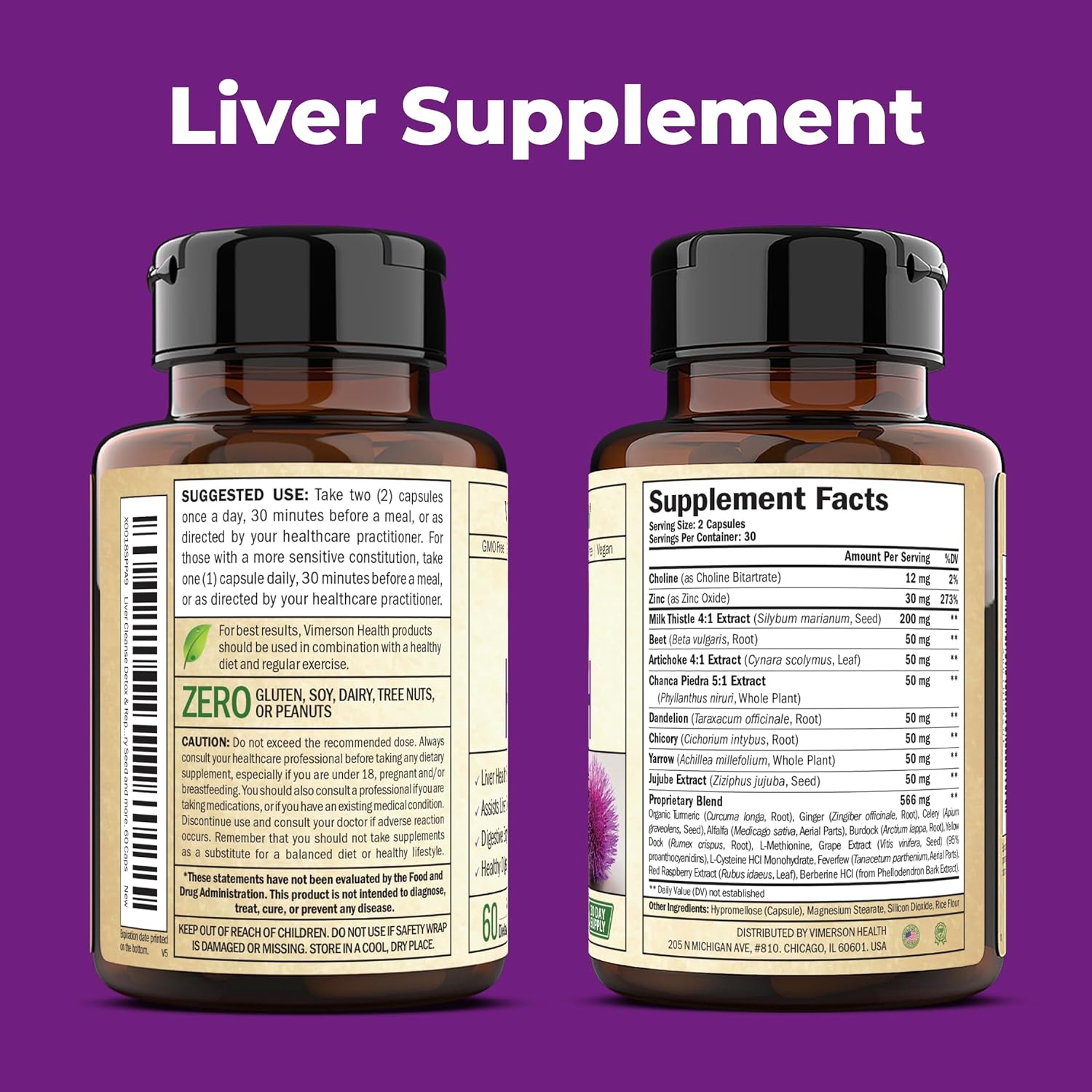 Per serving (2 capsules): Choline 12 mg, Zinc 30 mg, Milk Thistle Extract 200 mg, Beet 50 mg, Artichoke Extract 50 mg, Chanca Piedra Extract (Phyllanthus ninuri, Whole Plant) 50 mg, Dandelion Extract (Taraxacum officinale, Root) 50 mg, Chicory (Cichorium intybus, Root) 50 mg, Yarrow (Achillea millefolium, Whole Plant) 50 mg, Jujube Extract (Ziziphus jujuba, Seed) 50 mg. Proprietary Blend. Other ingredients: Hypromellose (Capsule), Magnesium Stearate, Silicon Dioxide, Rice Flour