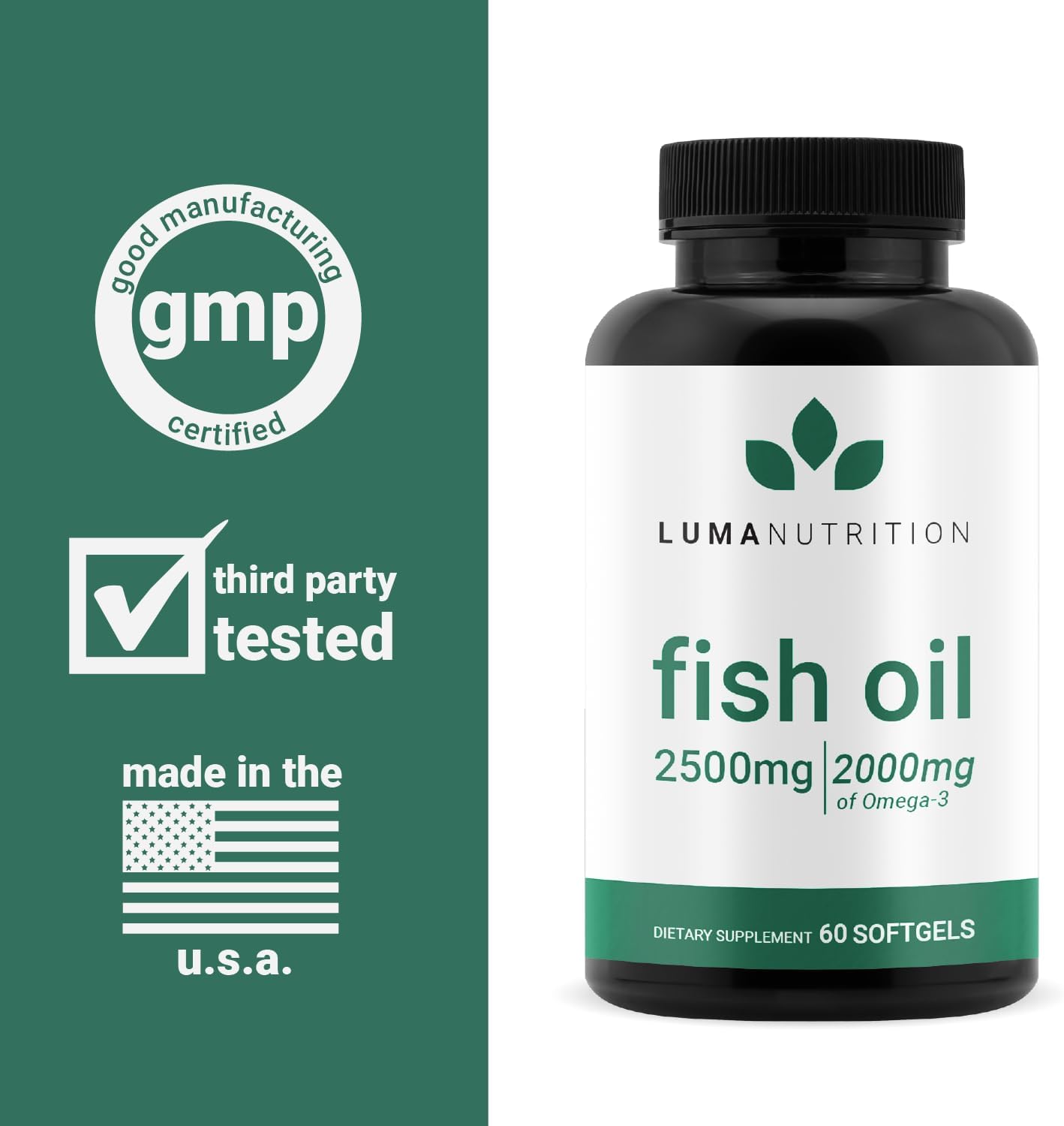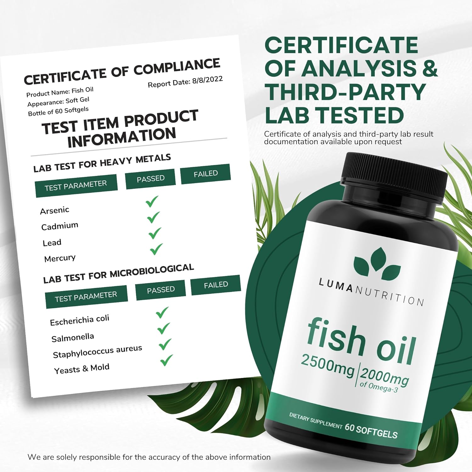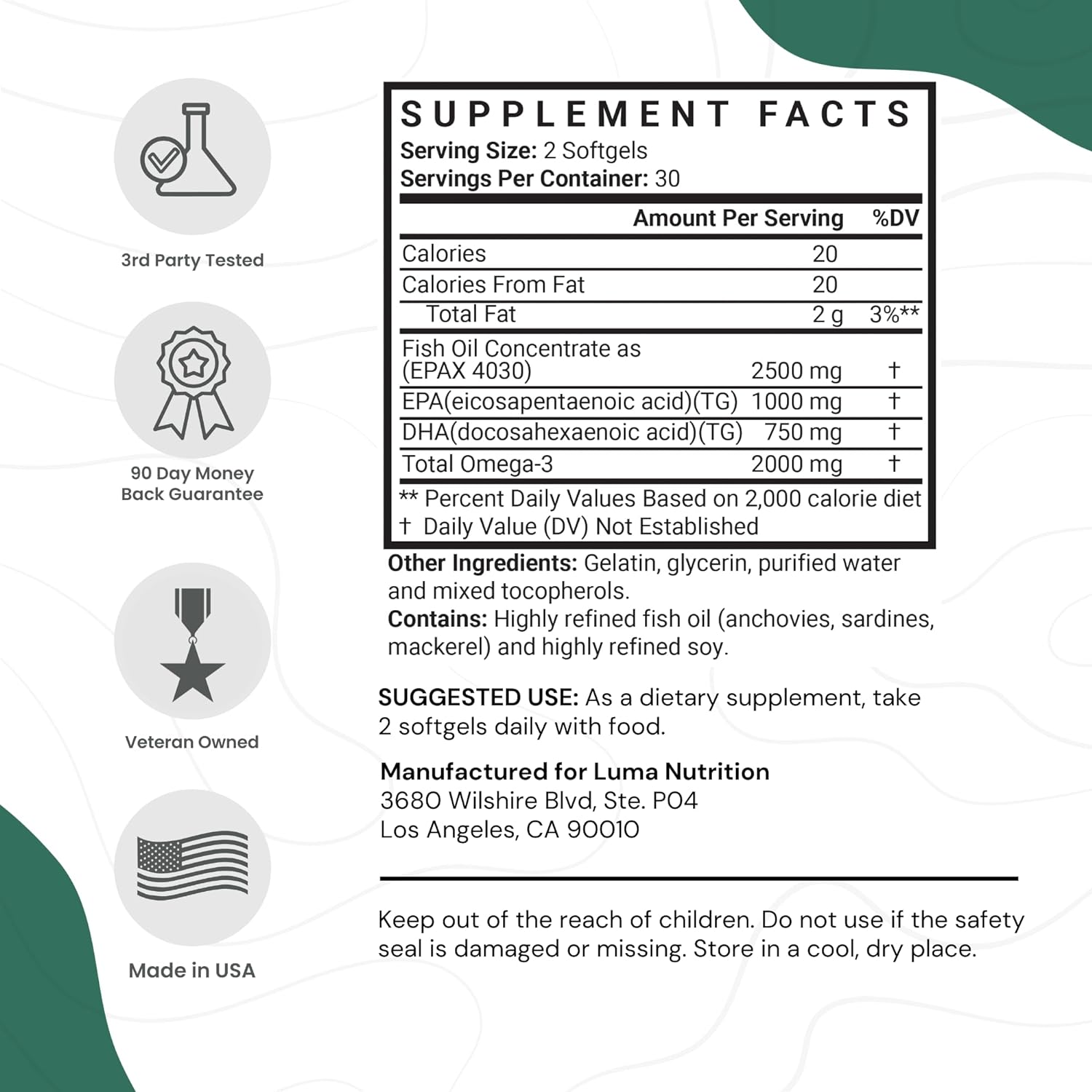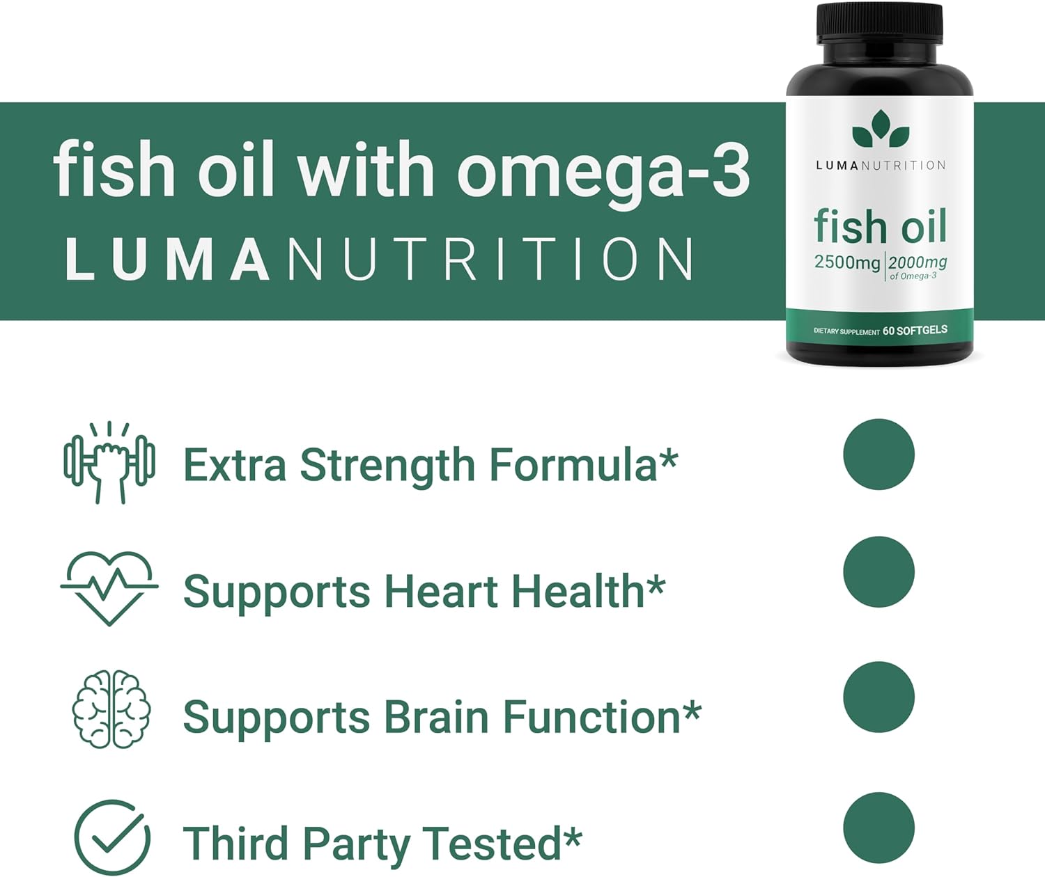 Luma Nutrition Omega 3 Fish Oil Supplement - Extra Strength 2500mg - 60 sofolegts