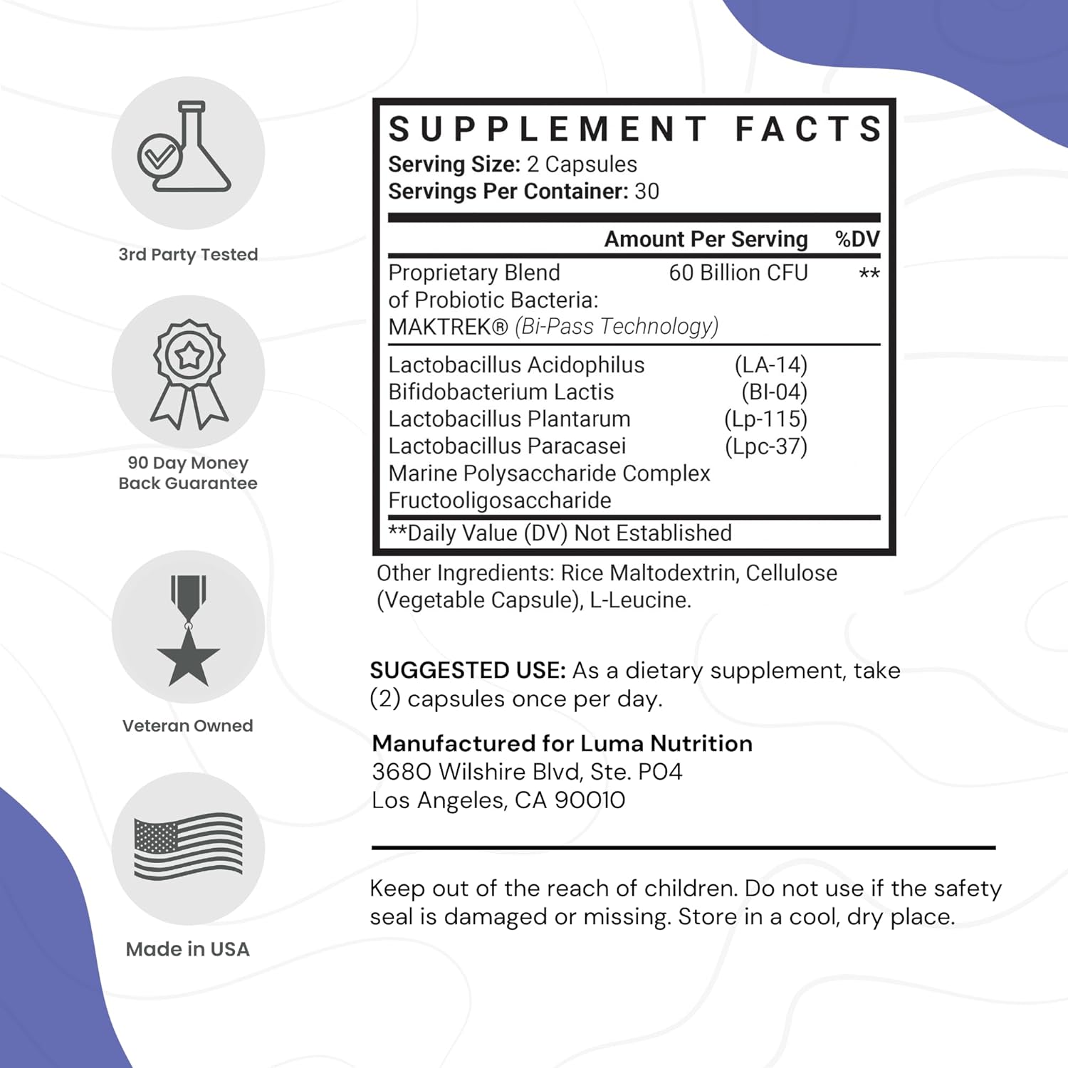 - 30 Day Supply - Each bottle last for one month. Luma Nutrition always provides top value with only the highest quality ingredients. Our probiotic formulation premium quality.