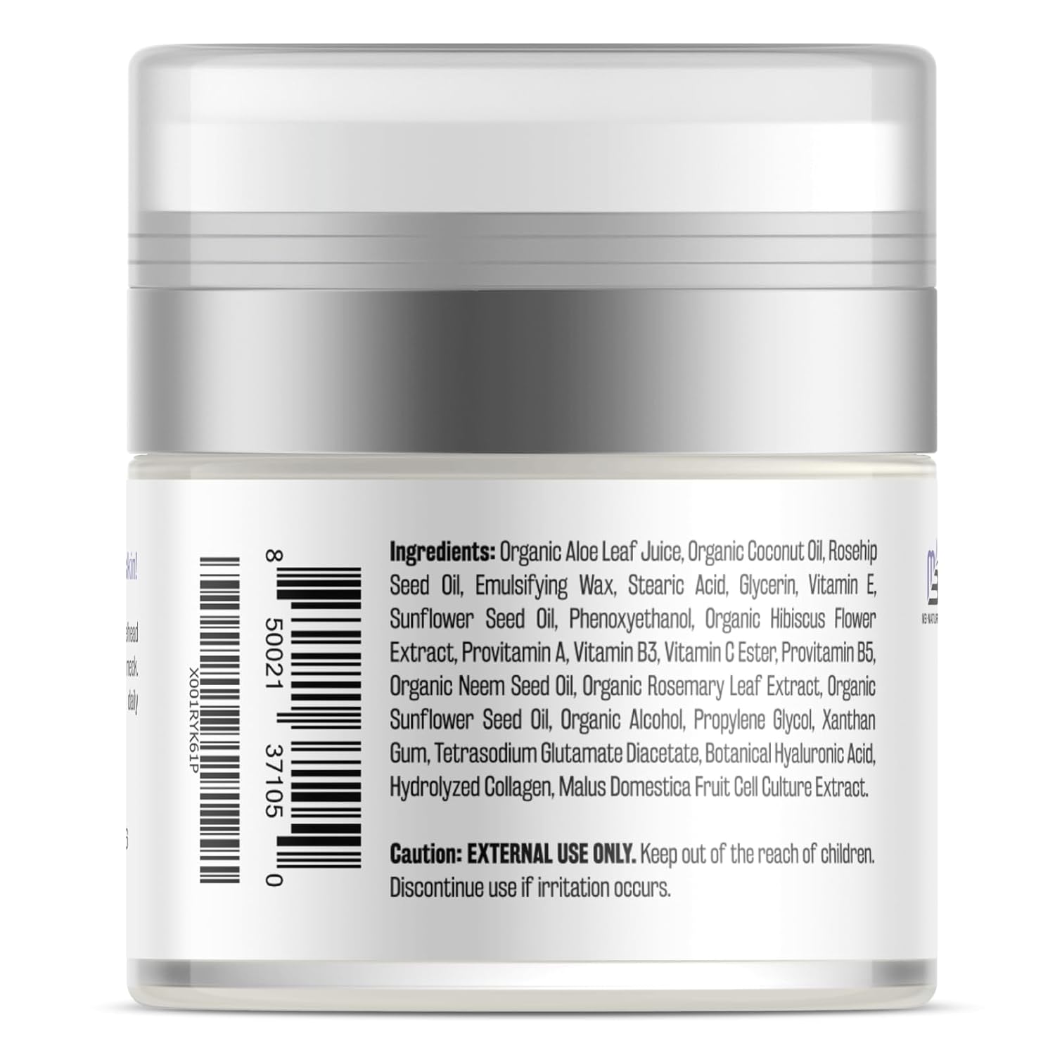 Dab gently around the eyes, forehead and cheek area. Can also be used on face and neck. Can be used under makeup. Use two times daily (morning and night) for best results.Hyaluronic Acid, Collagen, Fruit Stem Cell, Organic Aloe Leaf Juice, Organic Coconut Oil, Organic Neem Seed Oil, Organic Rosemary Leaf Extract, Organic Sunflower Seed Oil, Rosehip Seed Oil, Organic Hibiscus Flower Extract, Vitamin E, Glycerin, Phenoxyethanol, Emulsifying Wax, Stearic Acid, Provitamin A, Vitamin B3, Vitamin C Ester, Provitamin B5, Organic Alcohol, Propylene Glycol, Xanthan Gum, Tetrasodium Glutamate Diacetate