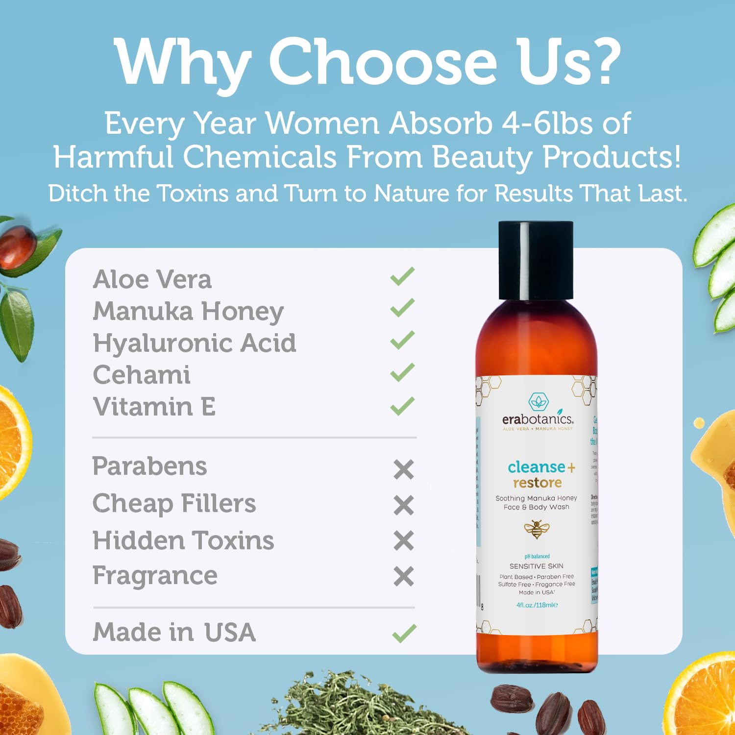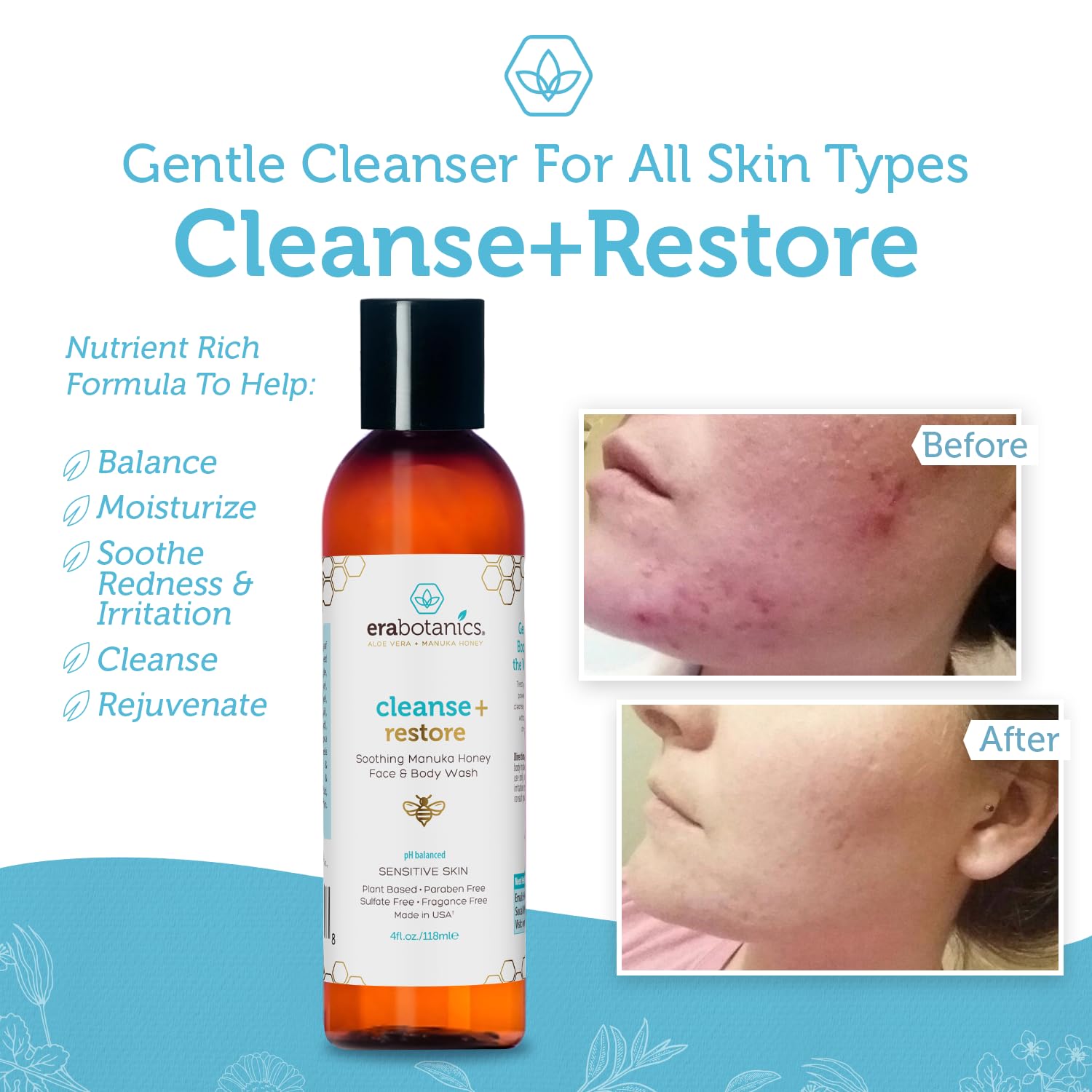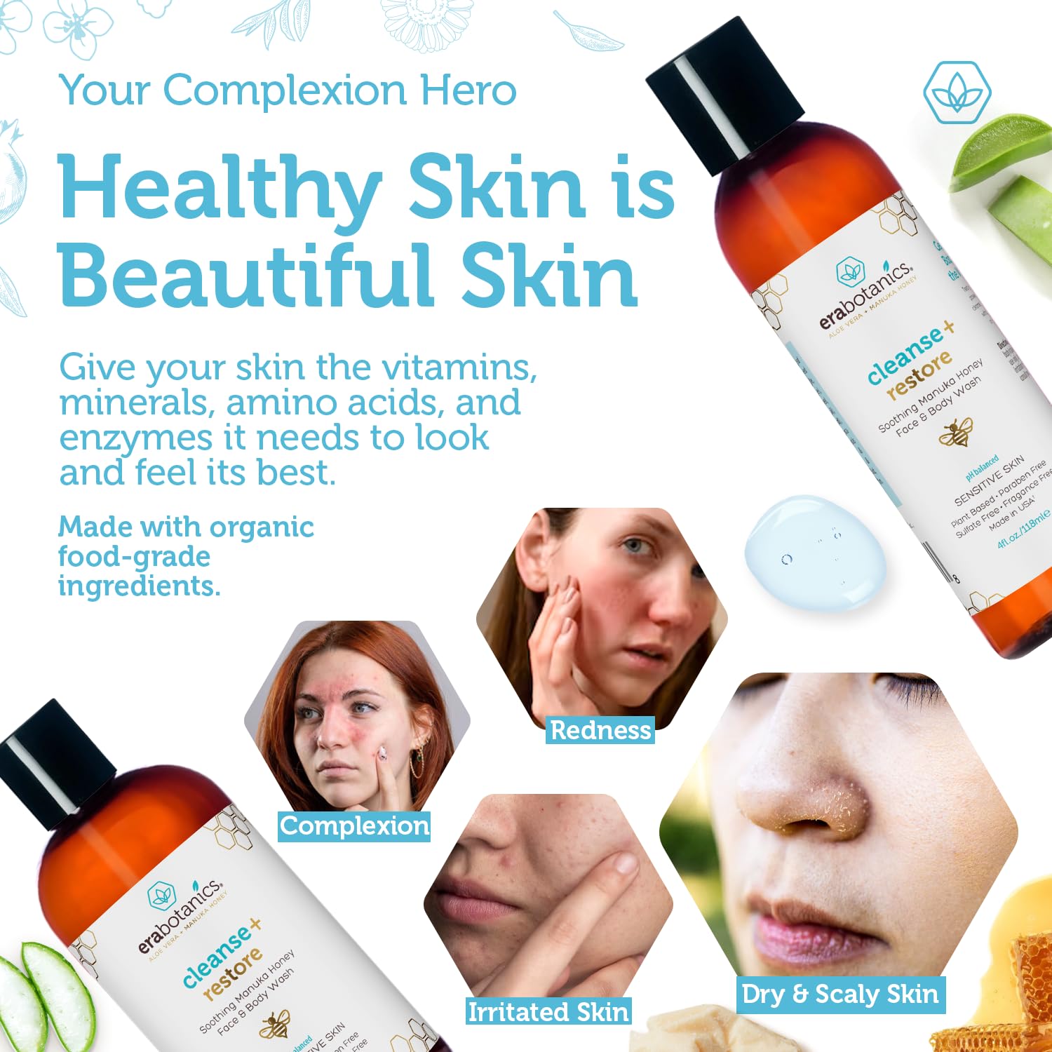 - Manuka Honey Face Wash To Help Restore Dull, Dry Skin. Support your skin’s natural biology without drying it out. Gentle facial cleanser that won’t remove your natural protection provided by oils and nutrients normally stripped away by most soaps and cleansers.