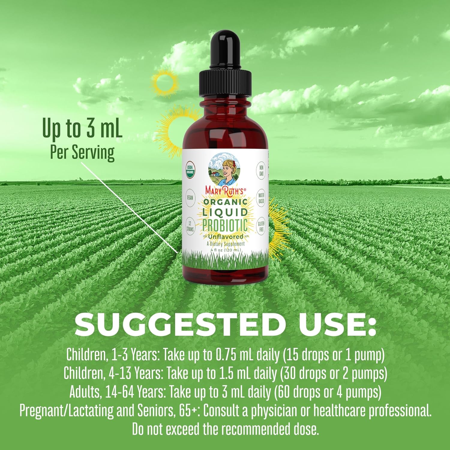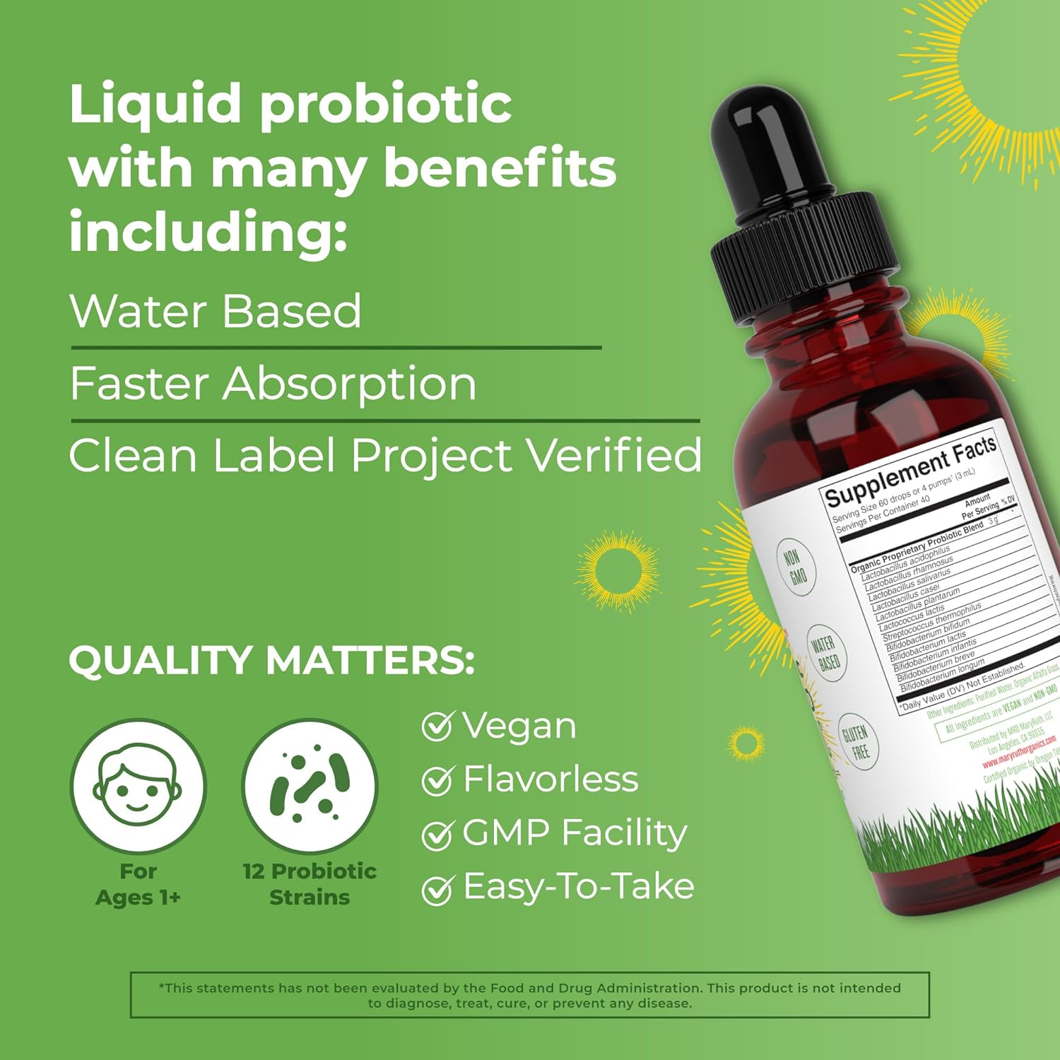 - USDA Organic Liquid Probiotic: This vegan USDA Certified Organic Liquid Probiotic is formulated with 12 unique probiotic strains. Formulated for ages 1+, you can easily does this probiotic for the whole family!