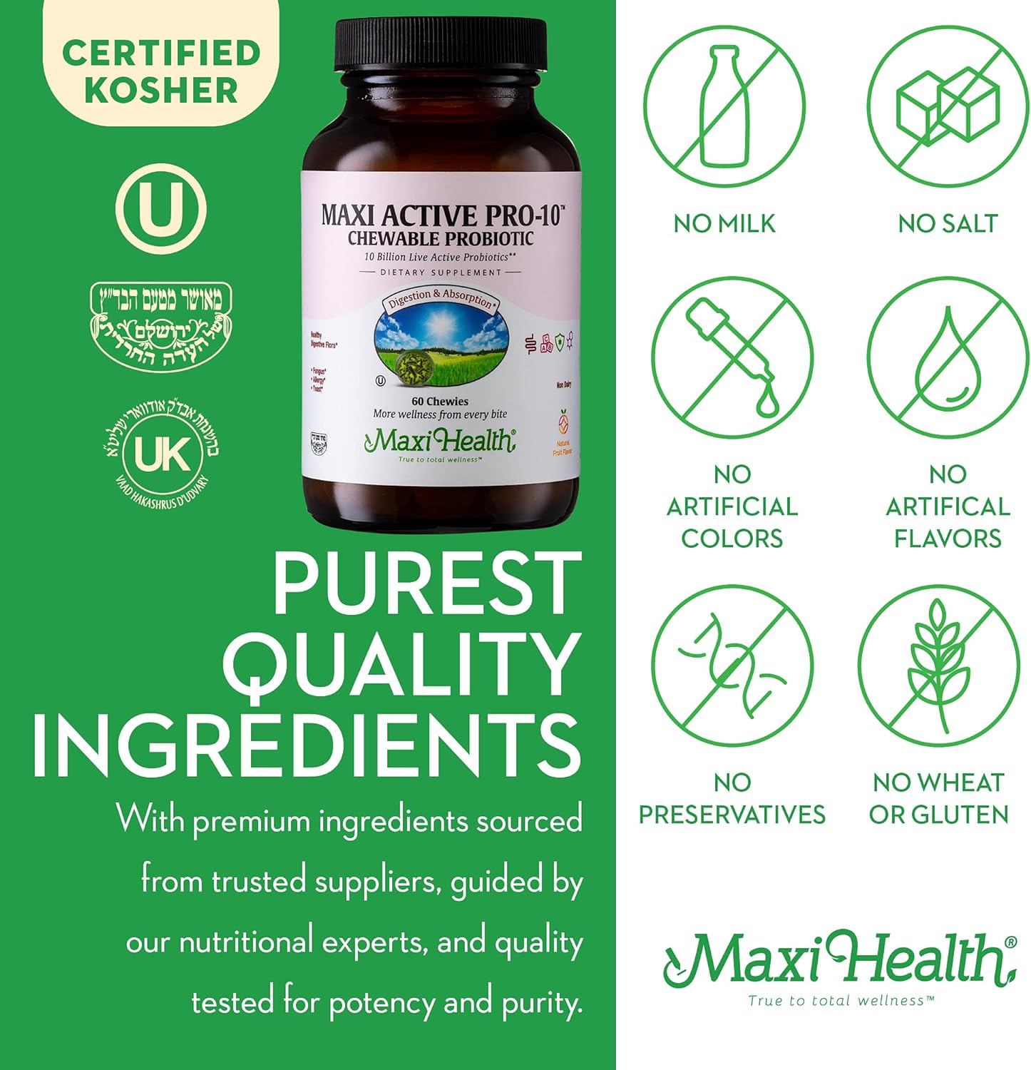 Maxi Health Active Pro-10 - Chewable Probiotic - Healthy Digestive Flora - 60 Chewies