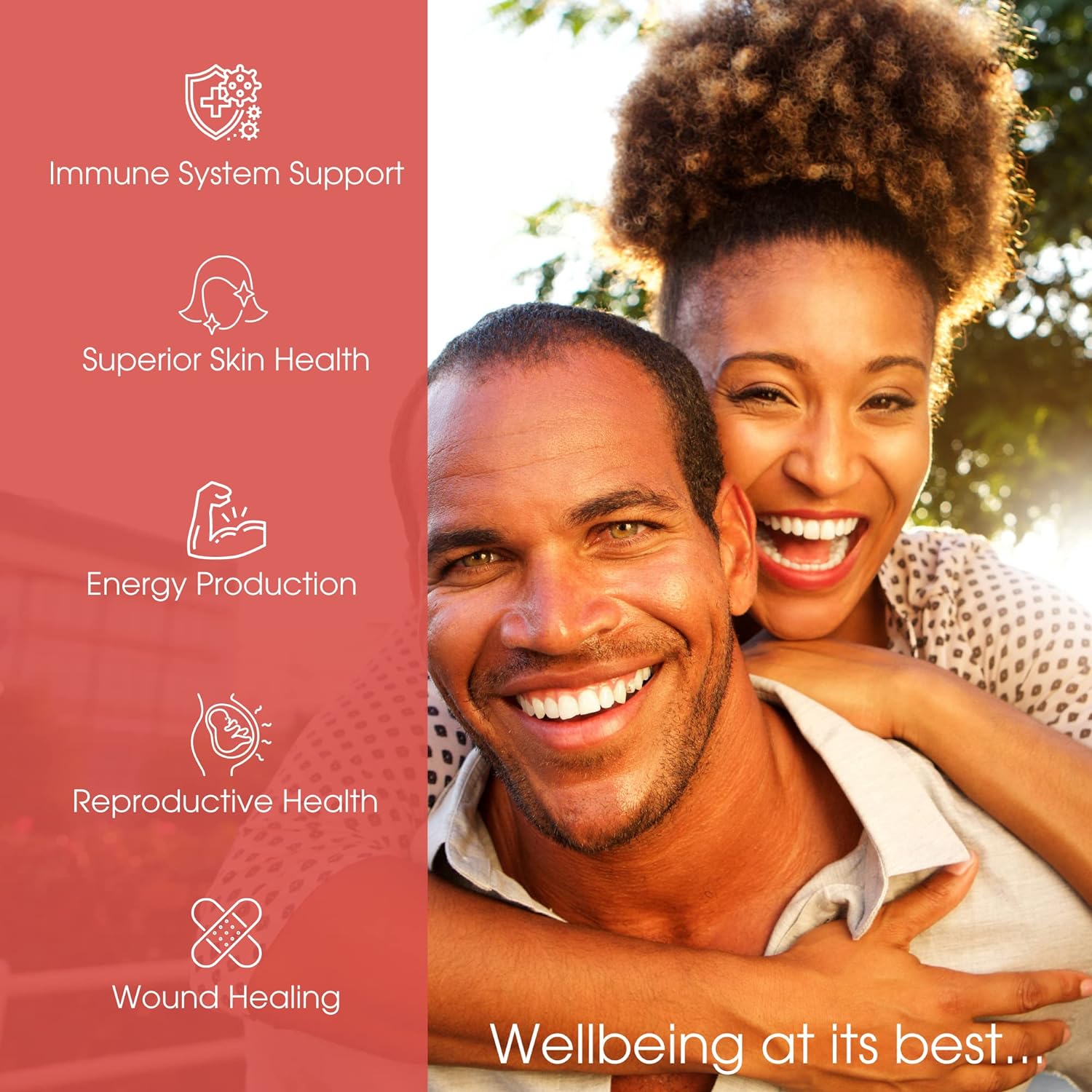 - ENJOY CLEAR HEALTHY SKIN – Skin cells are particularly dependent on zinc’s powerful properties! The mineral helps heal & rejuvenate skin cells as it protects skin’s lipids (fats) and fibroblasts (the cells that make collagen), when skin is exposed to UV light, pollution and other skin-agers. With its cell regulation properties, it can also help manage acne flare-ups & skin repair