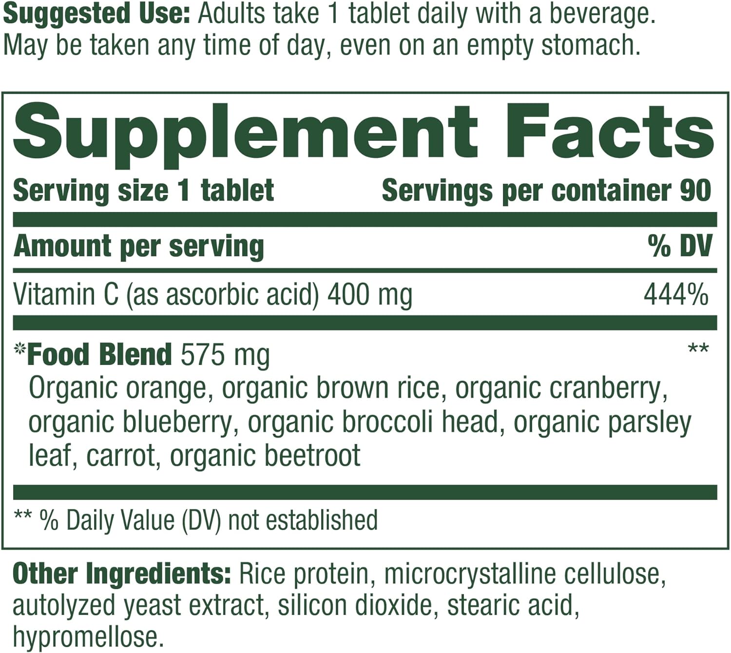 MegaFood, Ultra C-400, Supports Immune and Cellular Health, Antioxidant Vitamin C Supplement, Gluten-Free, Vegan, 90 Tablets (90 Servings)