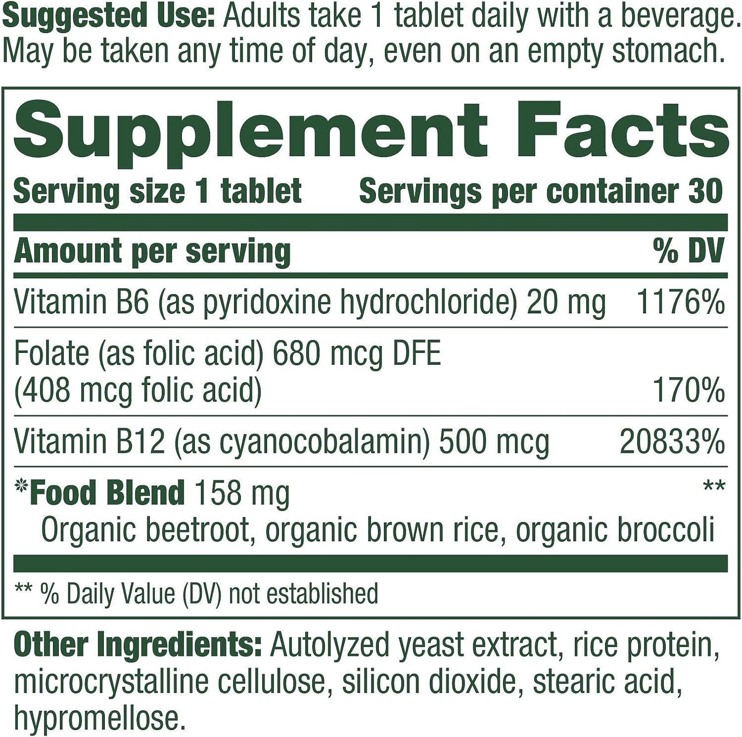 Vitamin B-6, Folate, Vitamin B-12, Organic Beet Root, S. cerevisiae, Silica, Vegetable Lubricant, Plant Cellulose.