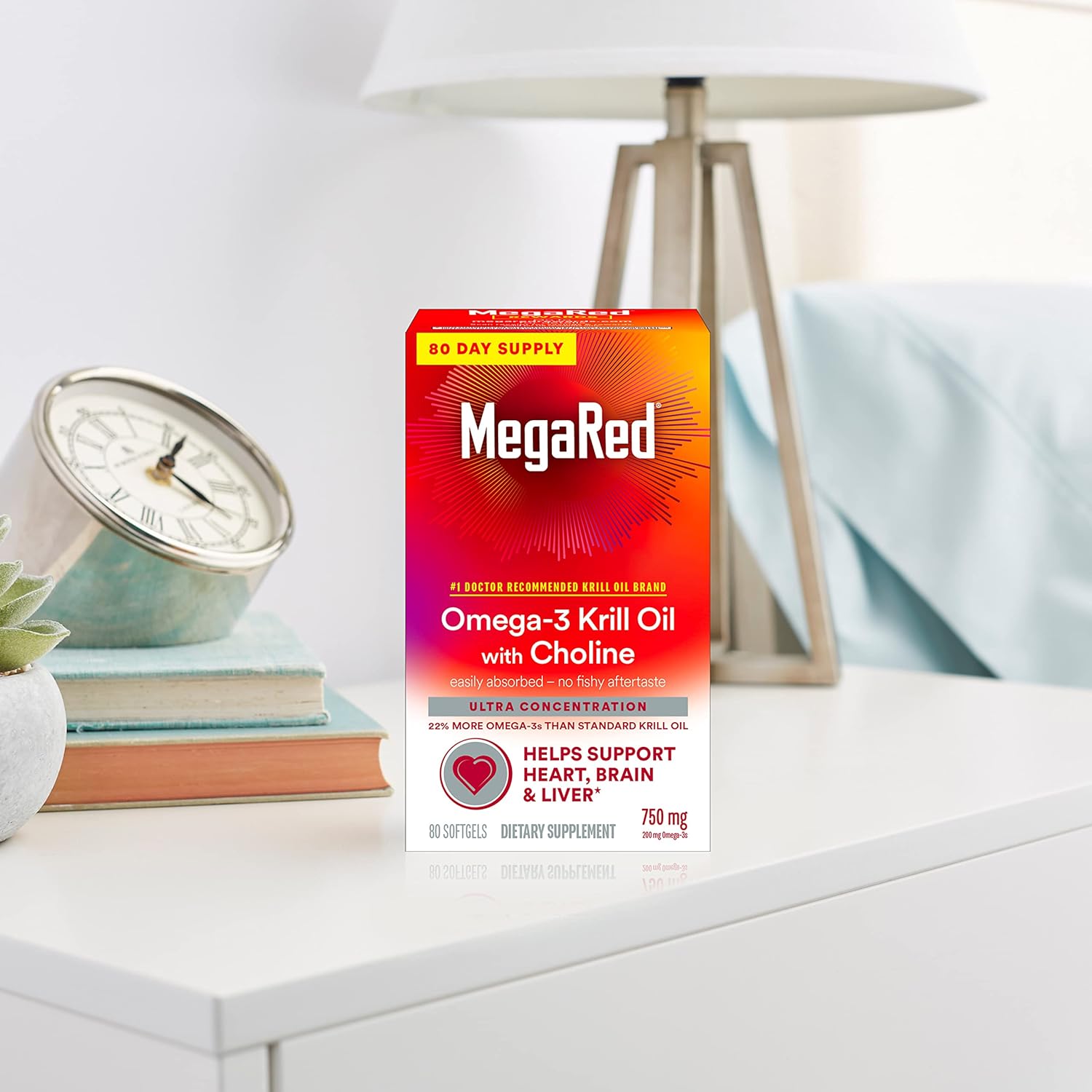 MegaRed Krill Oil 750mg Omega 3 Supplement with Choline,80 softgels