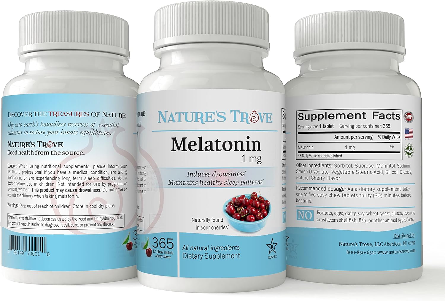 Melatonin 1mg by Nature's Trove - 365 EZ-Chew Tablets
