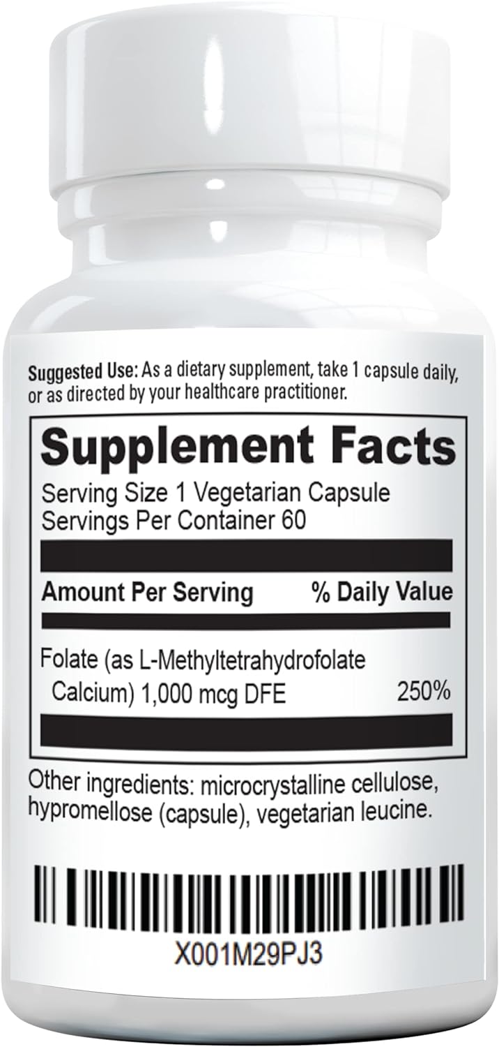 Folate (as L-Methyltetrahydrofolate Calcium) 1,000 mcg DFE Other ingredients: microcrystalline cellulose, hypromellose (capsule), vegetarian leucine.