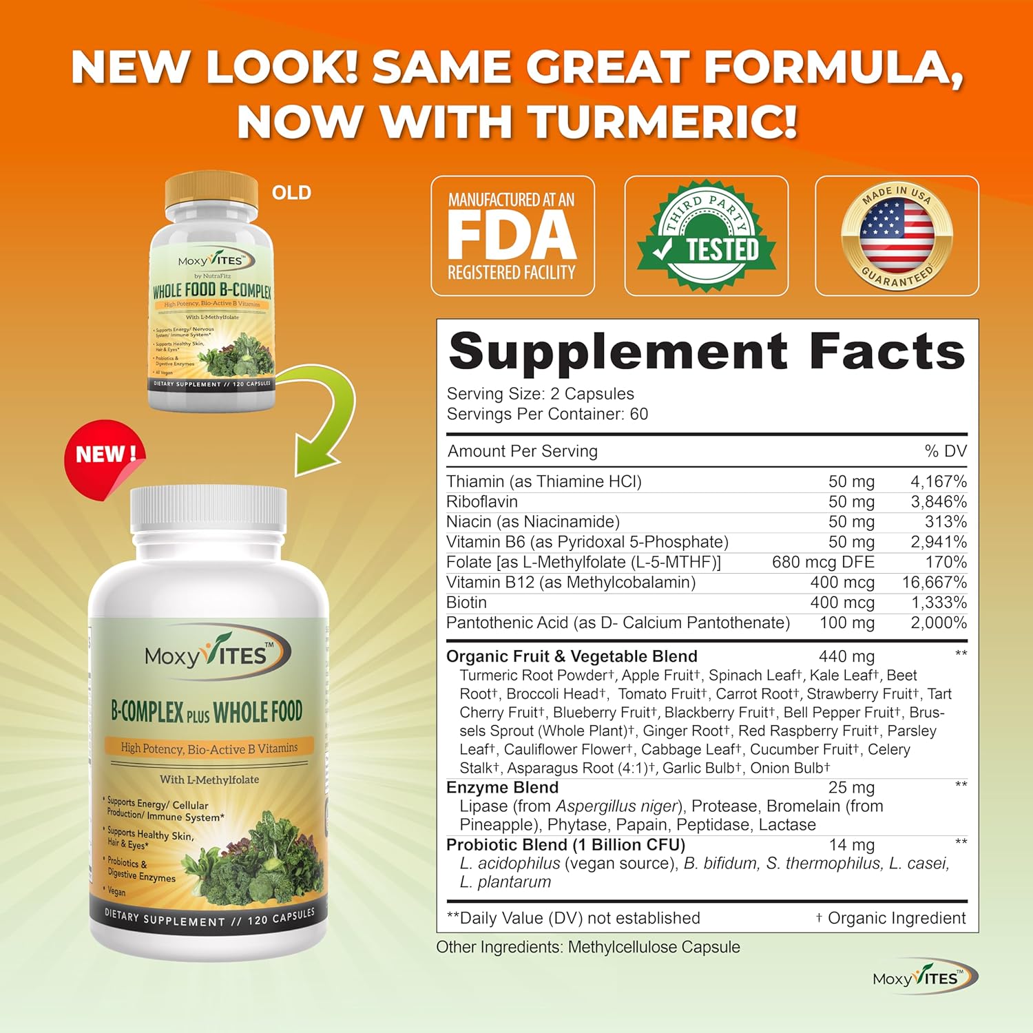 MoxyVites Vitamin B Complex - B Vitamins Whole Food Supplement 120 Capsules