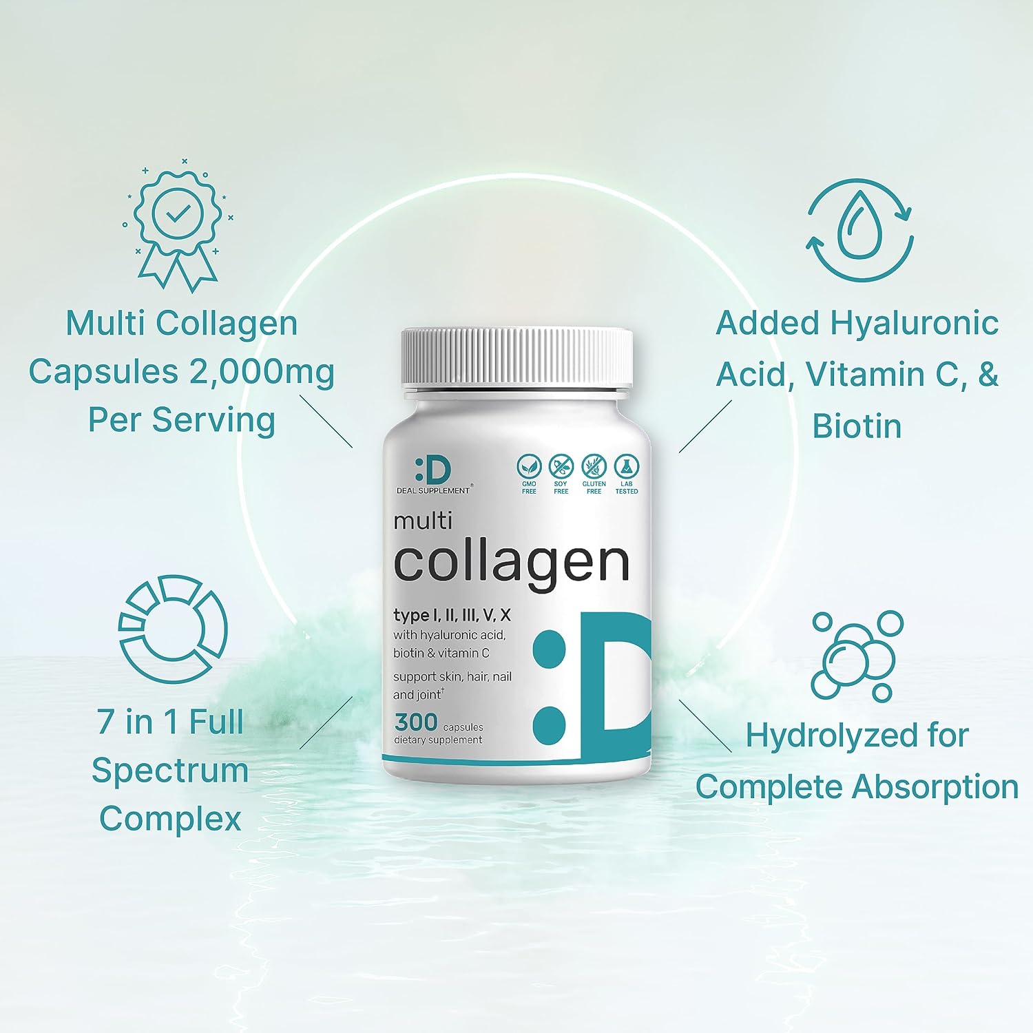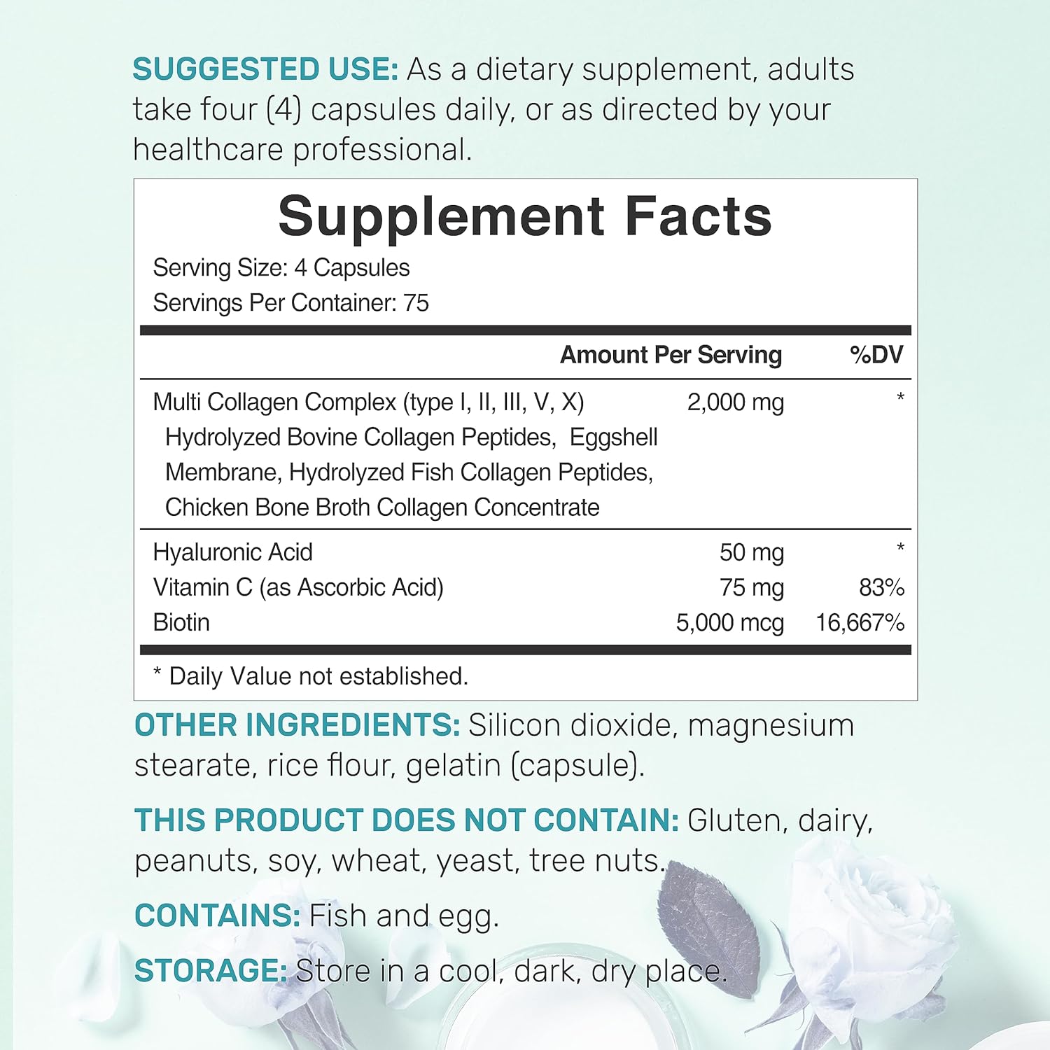 Multi-Collagen Pills with Vitamin C & Biotin - 300 Capsules