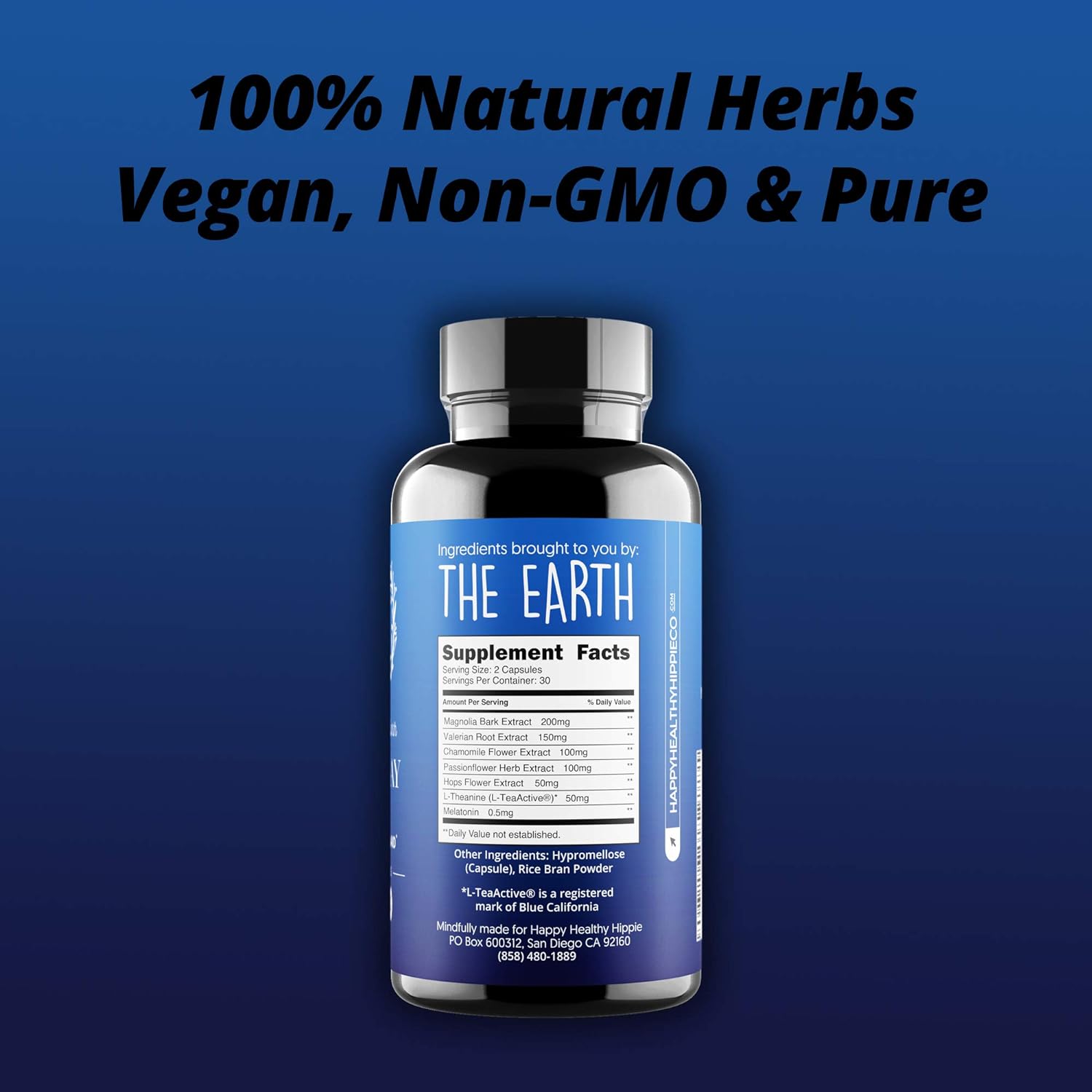 - [100% Natural Herbs & Melatonin] Just pure, premium, non-GMO, valerian, chamomile flower extract, passionflower extract, hops flower extract, magnolia bark, L-TeaActive L-Theanine (from tea leaf), and premium melatonin. (Not for pregnant women, nursing women or children).