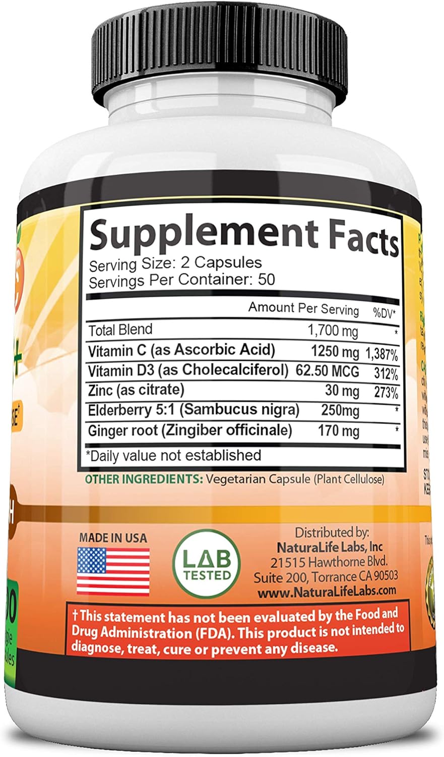 - ✔️Superior Quality: Pure Vitamin C, Vitamin D3, Zinc, Elderberry, & Ginger root without the use of fillers or binders. All our ingredients are bought from suppliers that go through a very thorough audit process to ensure they can meet our higher standards