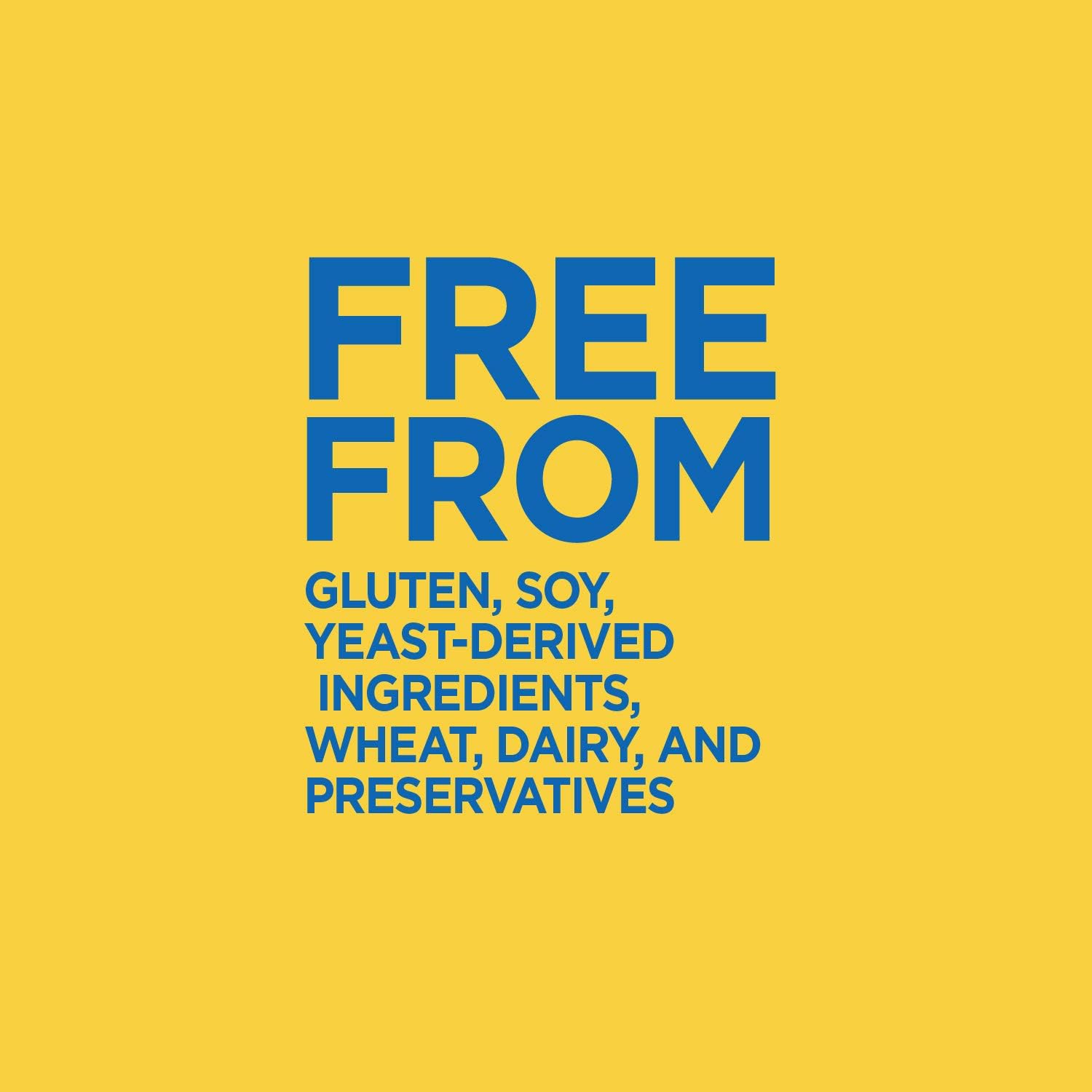 - Gluten-free. No soy, yeast-derived ingredients, wheat, dairy, or preservatives.
