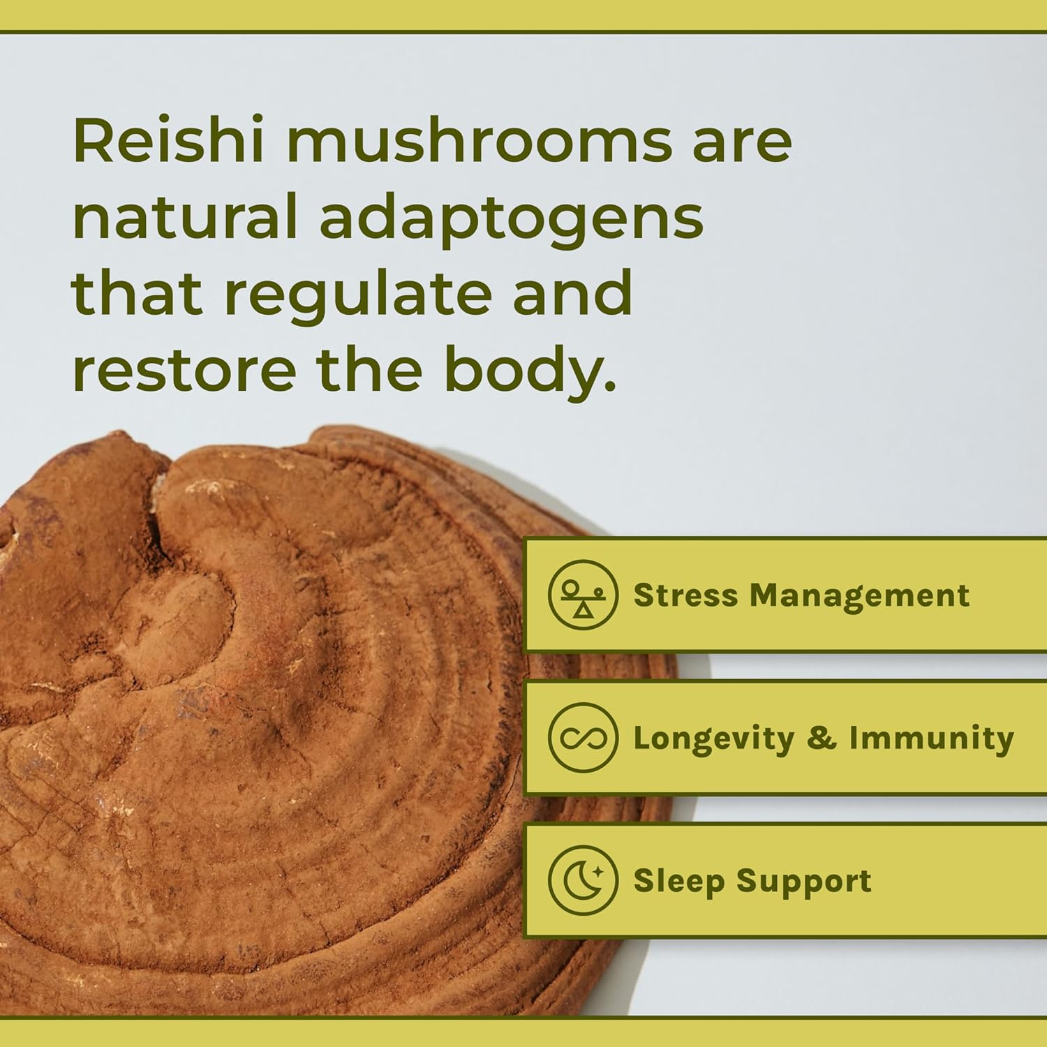 - REJUVENATING REISHI MUSHROOM CAPSULES: Reishi mushroom extract is a natural adaptogen that promotes balance during overwhelming times, restores your body, and improves sleep. Hailed as the "Elixir of Immortality," Reishi is nature's daily gift of longevity and rejuvenation. Reishi Capsules also simultaneously act as a superfood and immunity support supplement. Adaptogenic compounds like triterpenes and beta-glucans help strengthen weakened immunity.