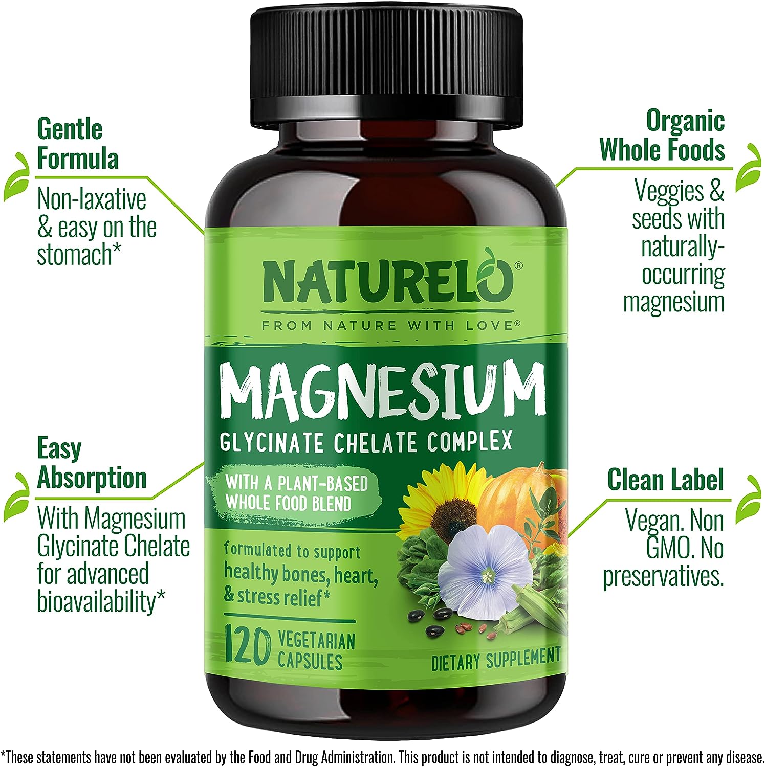 NATURELO Magnesium Glycinate Chelate Complex - 120 Capsules