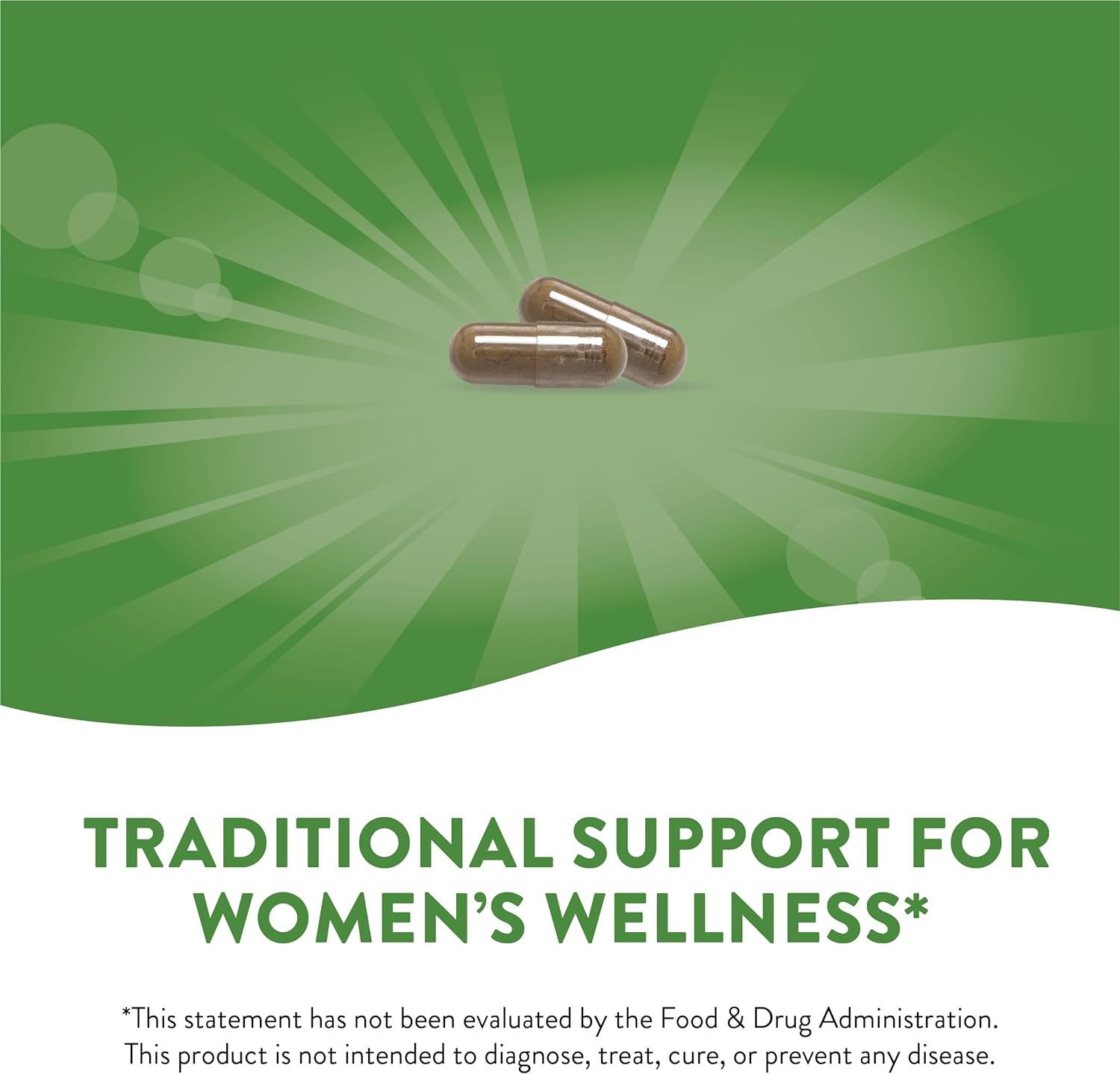 Red clover has been used traditionally for women's health.**This statement has not been evaluated by the Food and Drug Administration. This product is not intended to diagnose, treat, cure, or prevent any disease.