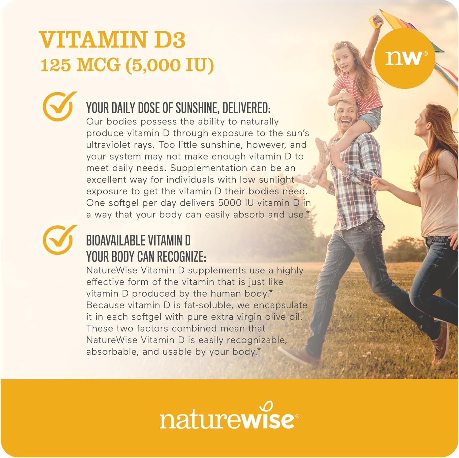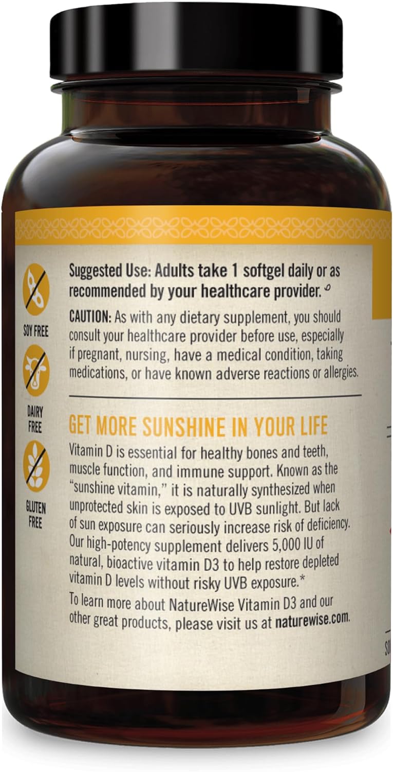 - Sunshine In a Bottle: The Vitamin D Council recommends daily vitamin D supplementation for most adults to achieve and maintain optimal levels, regardless of weather or season.* NatureWise Vitamin D3 is all natural, non-GMO, and gluten free with no artificial additives, fillers or binders.
