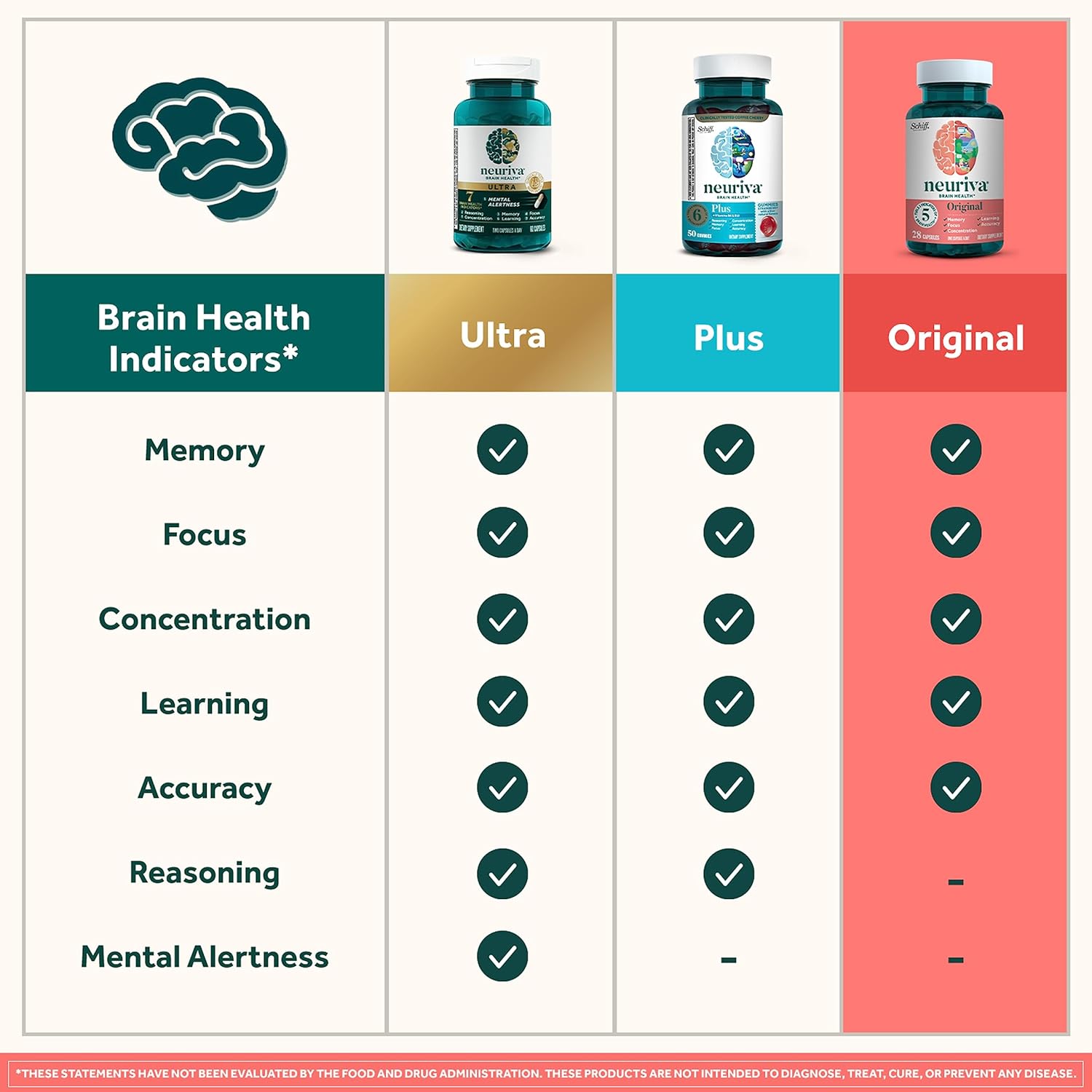 - MEMORY AND FOCUS SUPPLEMENTS FOR ADULTS: Investing in your brain health is essential, Neuriva offers a range of brain health* supplements specially formulated to support 5 indicators of brain health.* If you need a brain boost to help you focus at work or university, Neuriva has you covered with our range of brain supplements designed to promote brain health!