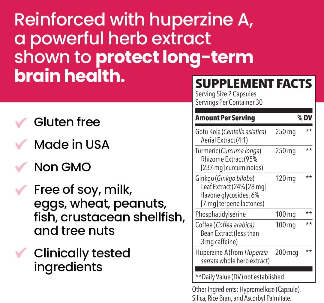 - Clinically Tested Ingredients - Crafted with all natural ingredients such as Huperzine A, Gotu Kola, Ginkgo Leaf extract, Phosphatidylserine, Coffee fruit extract, and Yamada Bee Farm propolis to promote brain and nervous system health.