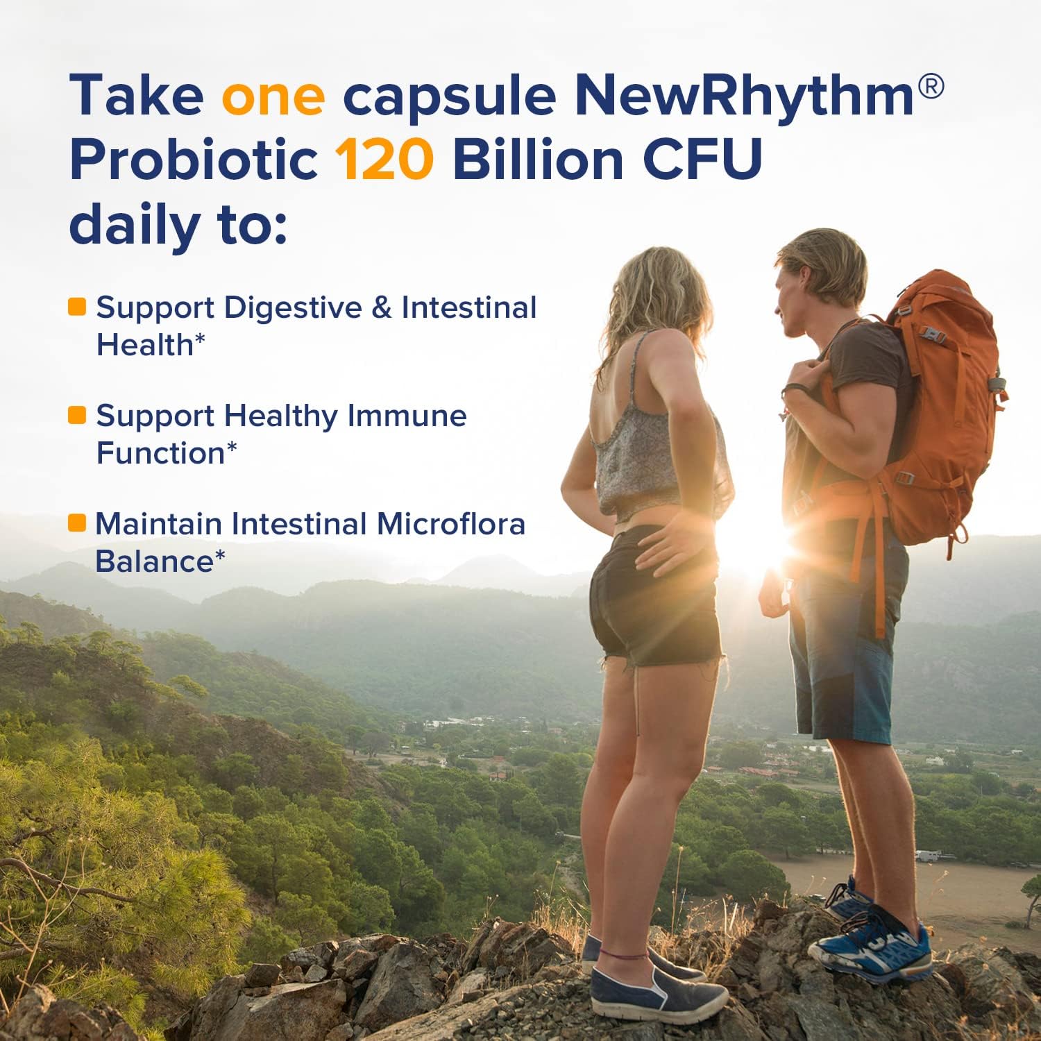 - 120 Billion 36 Strains Extra Strength Formula - NewRhythm Extra Strength Probiotics Delivers 120 Billion CFU Probiotics, 150 mg Premium Prebiotics Fiber, and Broad-Spectrum Digestive Enzymes to Ensure You Getting All You Need for Your Overall Digestive Support and Immune Boost.* Featuring Targeted Release Technology Helps Probiotics Survive Stomach Acids and Reach Your Intestinal Track.