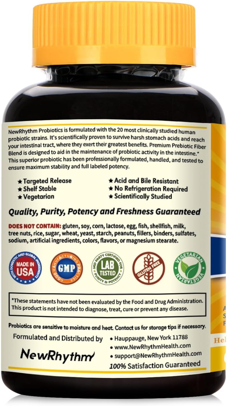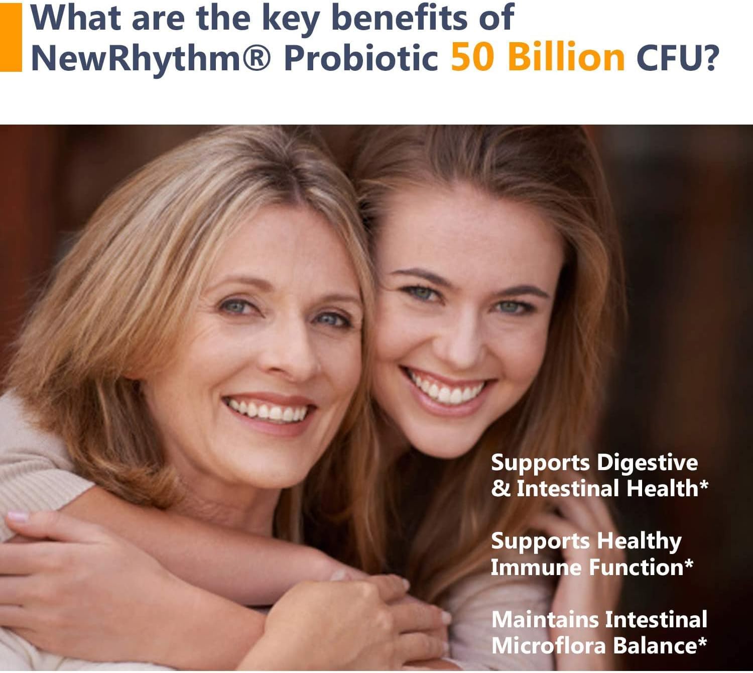 - ★50 Billion 20 Strains Targeted Release Formula★ NewRhythm 50 Billion Probiotics Capsules is Scientifically Backed and Clinically Proven, Formulated by Doctor with 50 Billion Living Organisms Per Serving, Featuring Targeted Release Technology to Help Probiotics Survive Stomach Acids and Reach Your Intestinal Track. Organic Prebiotics Fiber is also Included In the Formula.