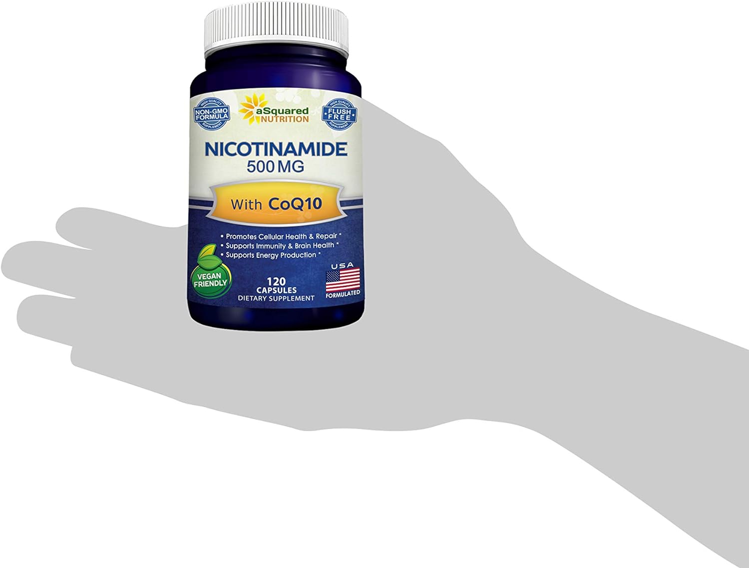 - SUPPORTS NAD LEVELS: Nicotinamide is flush free, and should not be confused with Niacin or nicotinic acid. Our proprietary complex contains 500mg of Nicotinamide & 100mg of CoQ10 powder to help support normal NAD / NAD+ levels (Nicotinamide adenine dinucleotide), and to support cellular health & longevity. Try also our Resveratrol 1000mg, Methyl B12, Quercetin Dihydrate with Zinc, and Liposomal Vitamin C. *