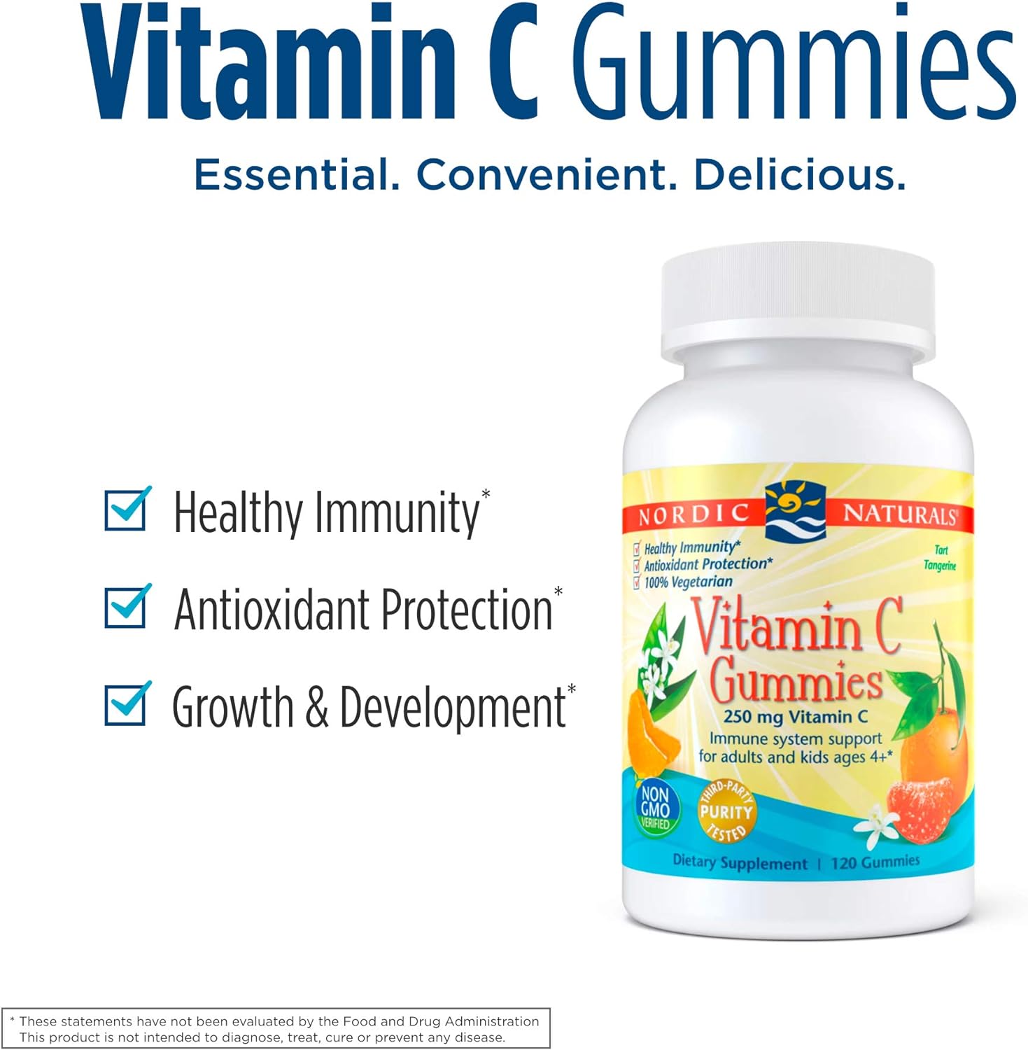 - DELICIOUS & CONVENIENT - Our bodies don't store vitamin C, so it's important to get a good supply every day. These Tart Tangerine-flavored gummies provide your kids (and you) with a delicious way to get 250 mg of vitamin C.