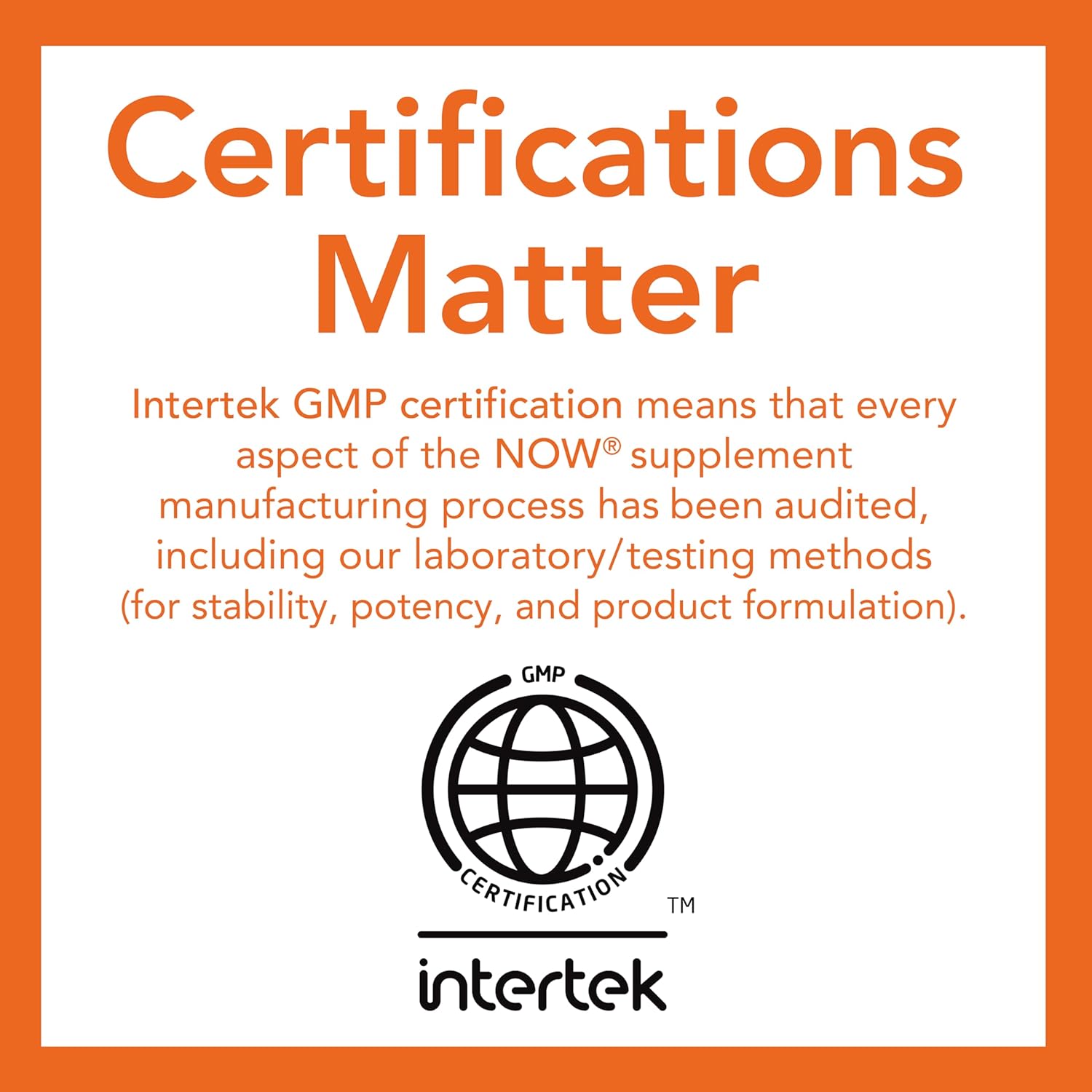 - GMP Quality Assured: NPA A-rated GMP certification means that every aspect of the NOW manufacturing process has been examined, including our laboratory/testing methods (for stability, potency, and product formulation).