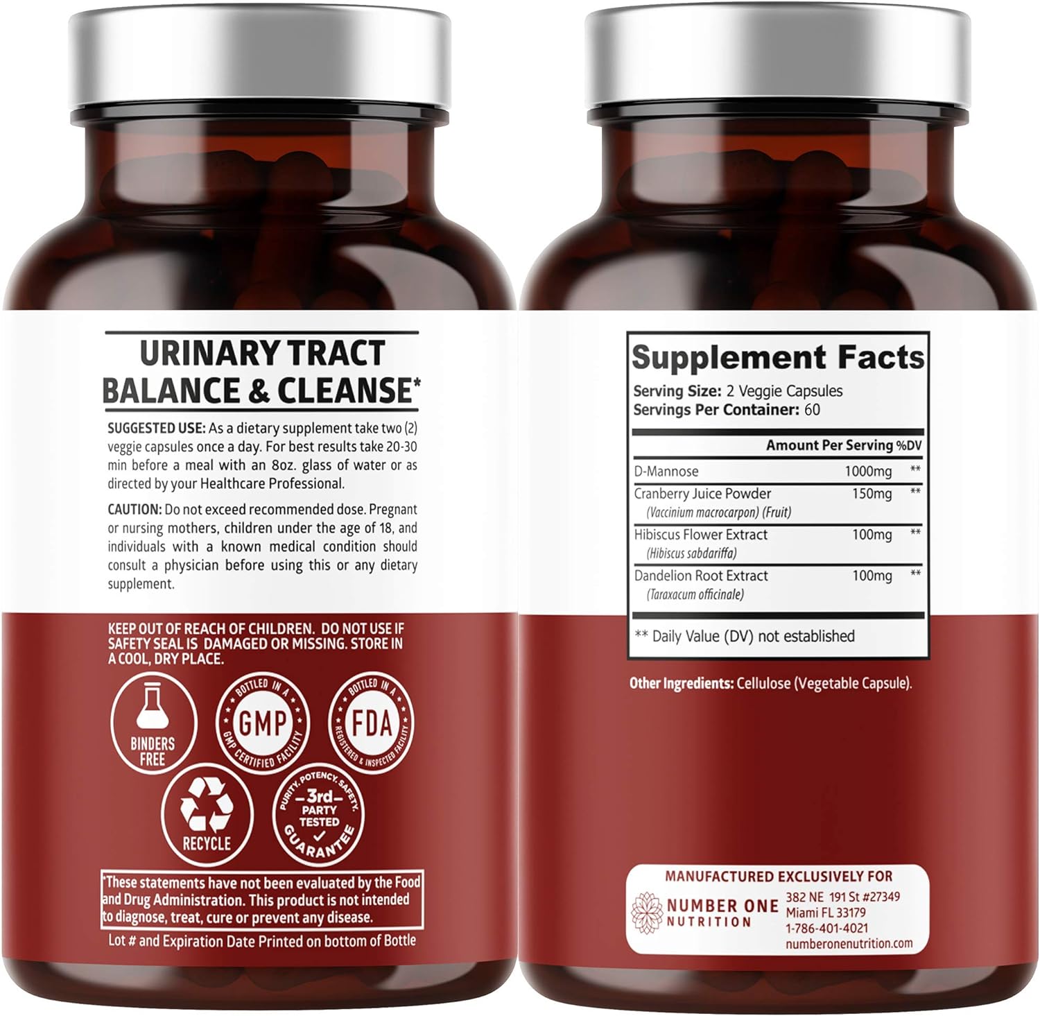 D-Mannose, Cranberry Juice Powder, Hibiscus Flower Extract, Dandelion Root Extract