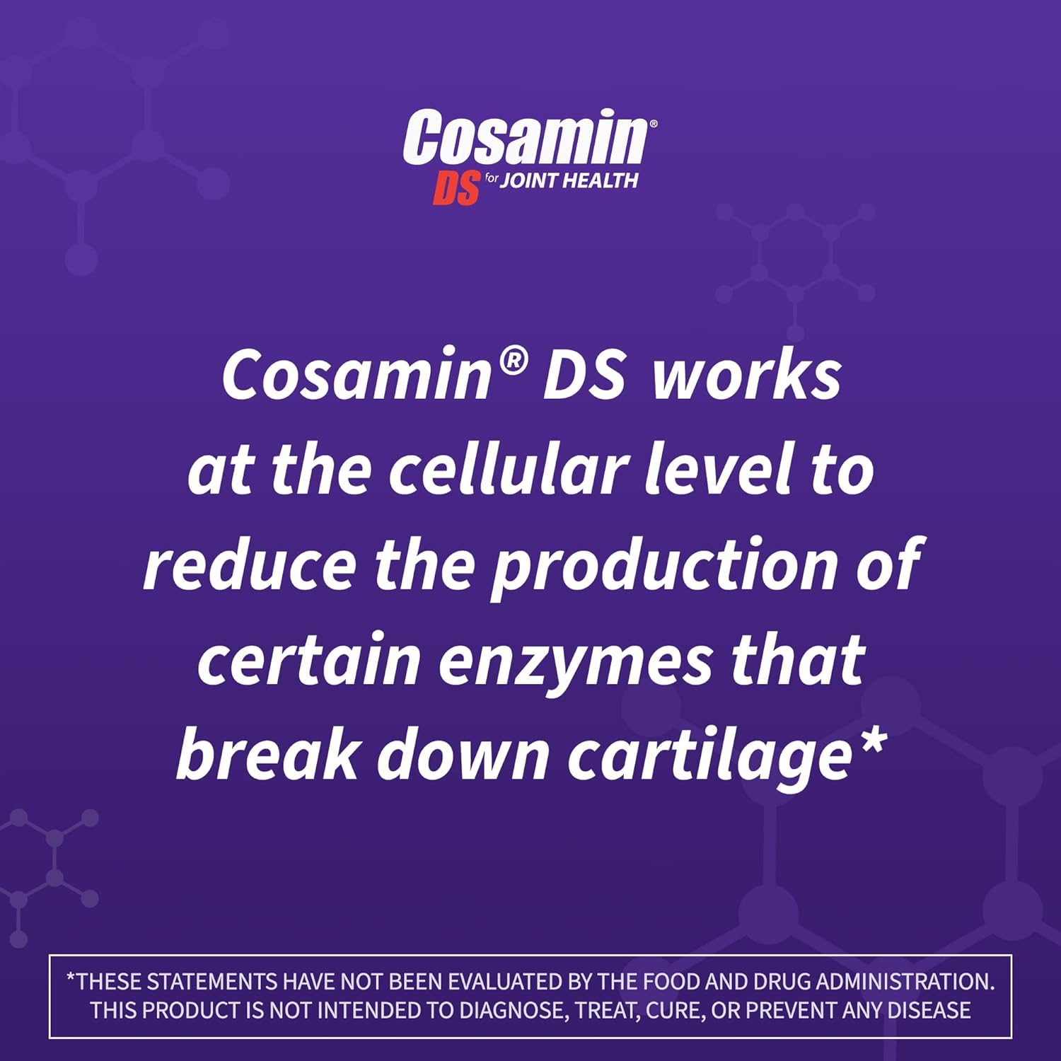 Cosamin Product LineCosaminThe glucosamine and chondroitin in Cosamin DS helps support joint healthCommitment to quality through product innovation, quality testing and high-quality ingredientsWhen it comes to your joints, there’s comfort in knowing that Cosamin is proven by more research than any other leading joint supplement.* Cosamin DS is proven to be effective in U.S. published clinical studies on joint health.* The revolutionary formula of ingredients work together to promote joint comfort at the cellular level, helping to block certain enzymes that break down cartilage*. The combination of our Glucosamine HCl and Chondroitin Sulfate in our joint supplement has been shown in cell culture research to decrease levels of markers associated with cartilage breakdown and joint discomfort.*These statements have not been evaluated by the food and drug administration. This product is not intended to diagnose, treat, cure, or prevent any disease *Based on top 10 brands of data reported by Nielsen through its AOD Service for the Supplement Category for the 52-week period ending 12/31/2021 for the U.S. market.