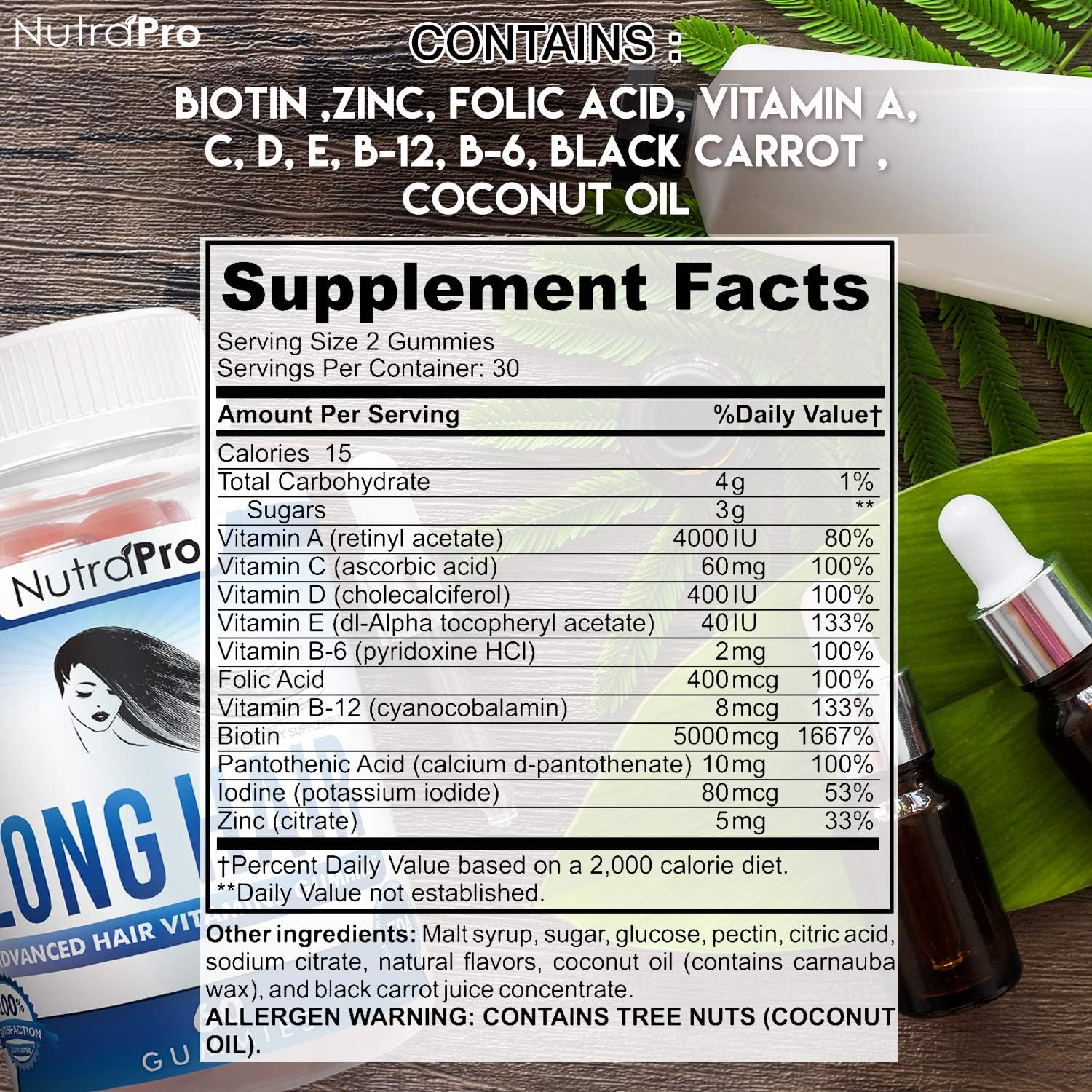NutraPro Long Hair Gummies – Anti-Hair Loss Supplement for Faster Hair Growth - 60 gummies