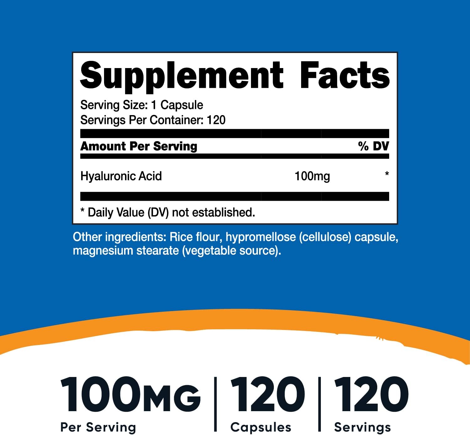 - 100mg of Hyaluronic Acid Per Capsule (120 Servings)