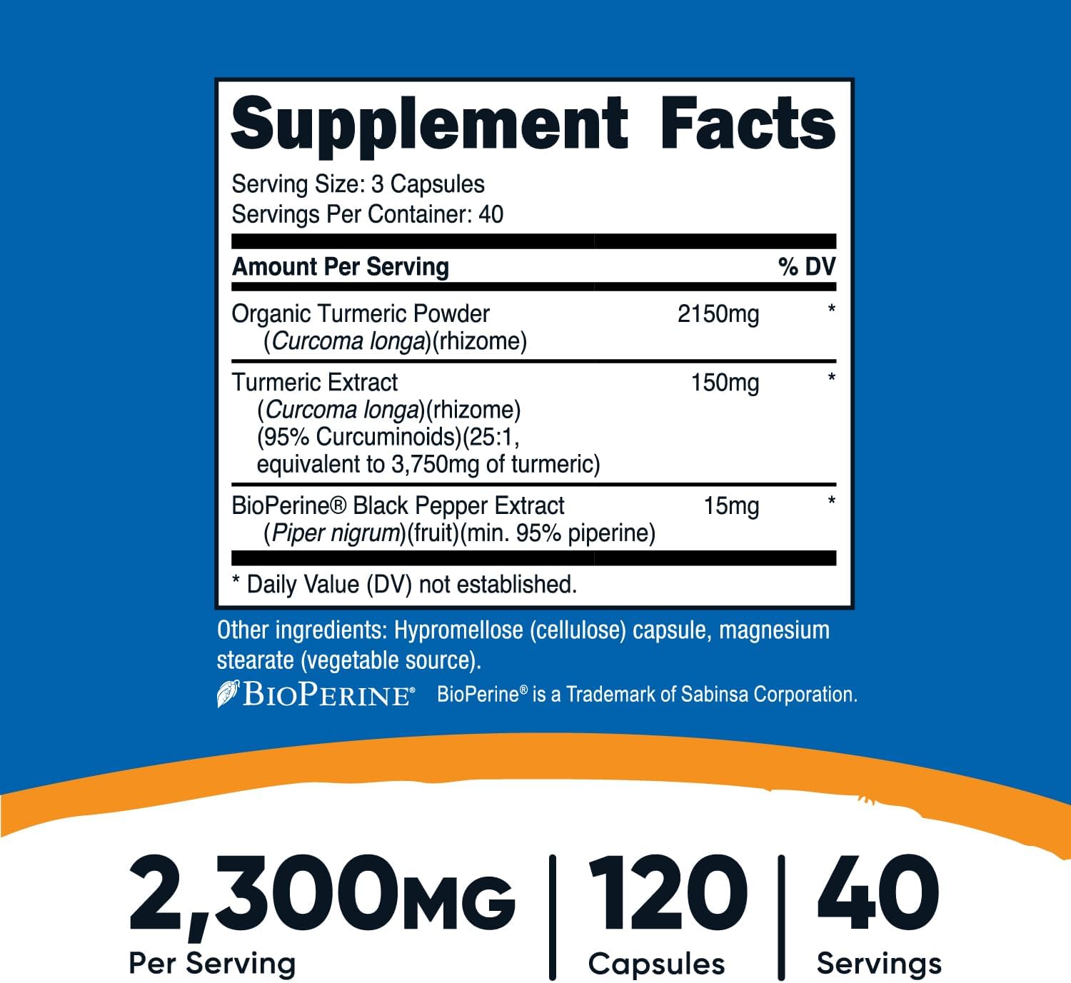 - With BioPerine For Improved Absorption and Uses 95% Curcuminoids Turmeric
