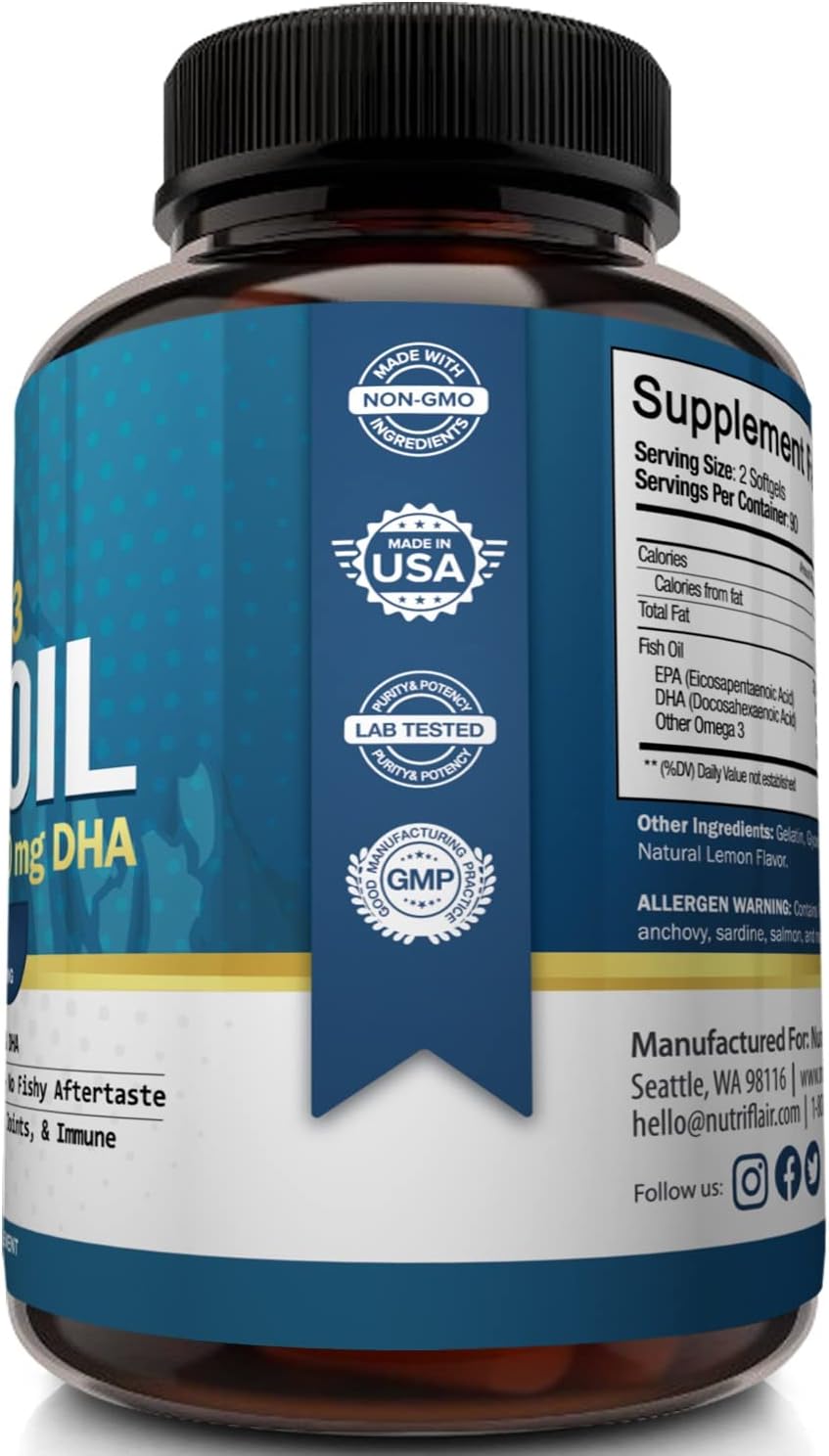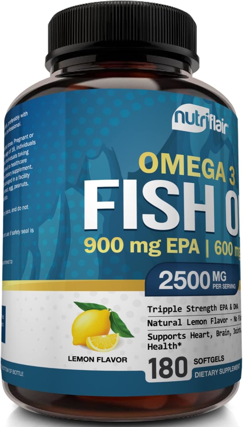 - FISH OIL OMEGA 3 BENEFITS: NutriFlair's premium fish oil supplement offers essential Omega-3 fatty acids, including EPA and DHA, supporting holistic well-being and a health-conscious routine.