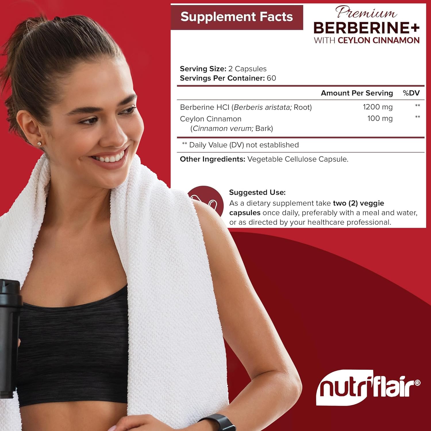 - Berberine 1200 mg Plus Ceylon Cinnamon 100 mg, 120 Veggie Capsules - Introducing NutriFlair Berberine Supplements with 1200 Mg Berberine HCL plus 100 mg of Natural, Pure, True NutriFlair Ceylon Cinnamon, per Serving