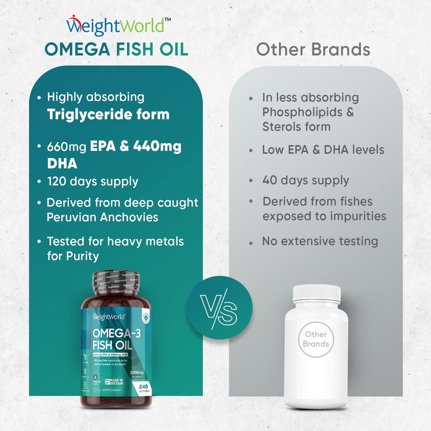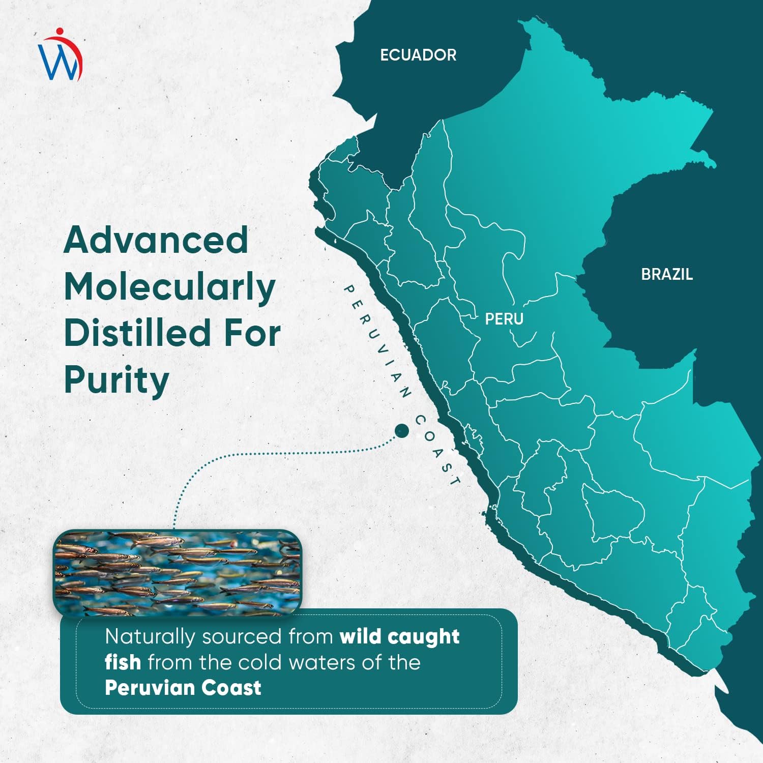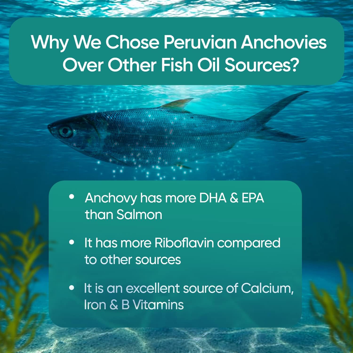 - HIGH PURITY & HIGH STRENGTH: Our omega 3 fish oil is sourced from wild-caught Peruvian Coast Anchovies of deep cold waters using sustainable fishing practices. The fish oils are then distilled for purity to deliver the highest levels of contaminant-free Omega 3 fatty acids - 660mg of EPA & 440mg of DHA per serving. This makes our fish oil omega 3 capsules a better alternative to krill oil or cod liver oil capsules high strength supplements.