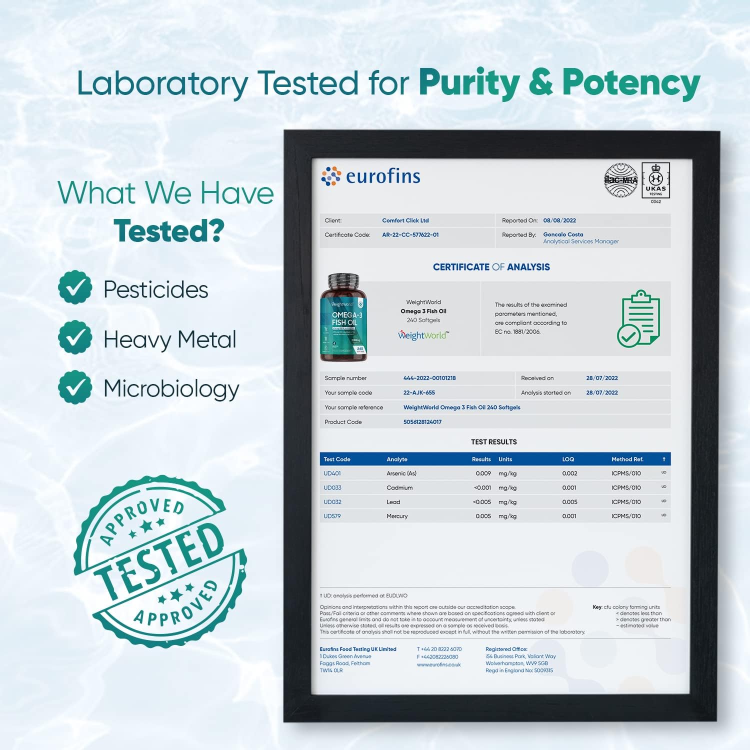 - LAB-TESTED, NON-GMO & GMP-CERTIFIED: To ensure purity and safety, our fish oil omega 3 capsules high strength supplements have been tested by 3rd party lab for pesticides & heavy metals. Free from gluten, lactose, nuts & antibiotics, our omega 3 fatty acids supplements are certified under GMP guidelines for your peace of mind. Nourish your body & life with our omega 3 fish oil supplements.