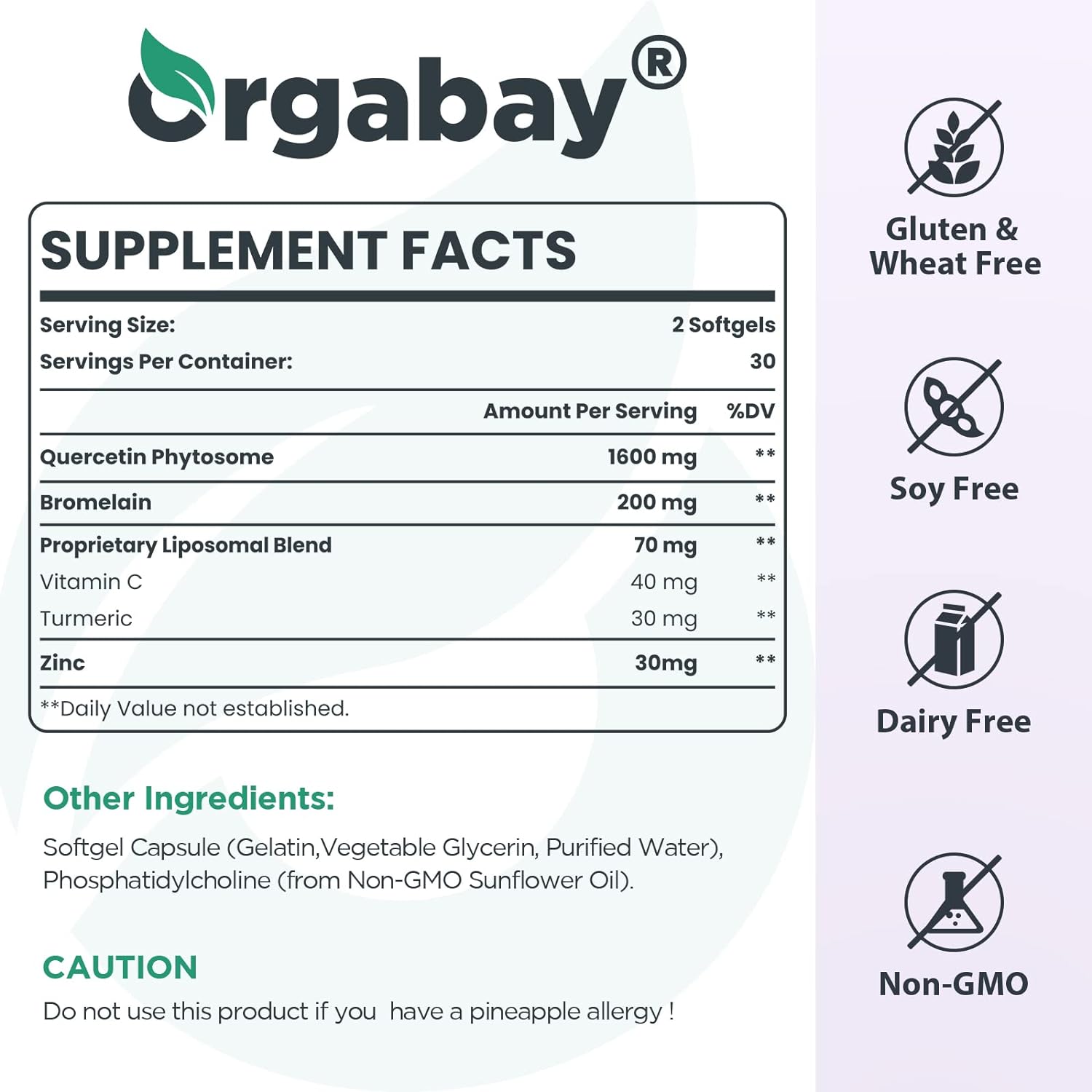 - 🥇 MADE IN USA: Non-GMO, Soy-Free, Gluten-Free, and Sugar-Free. Orgabay zinc with quercetin supplements is manufactured in the USA with the highest quality control standards. Available in 60 soft gels for a 30-day supply.