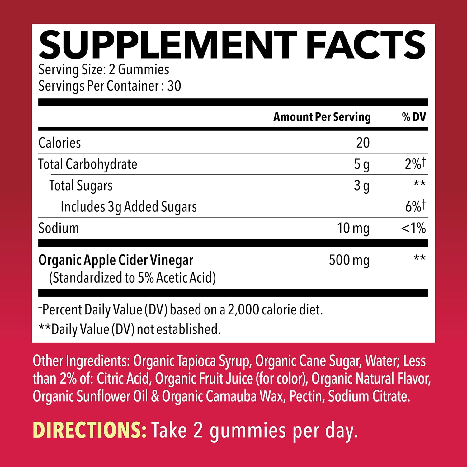 Vegan, Organic, Non-gmo, Gluten Free & Gelatin Free! Each bottle of our apple cider vinegar gummies contains 60 delicious gummies that are good for you and your new workout routine for the new year!