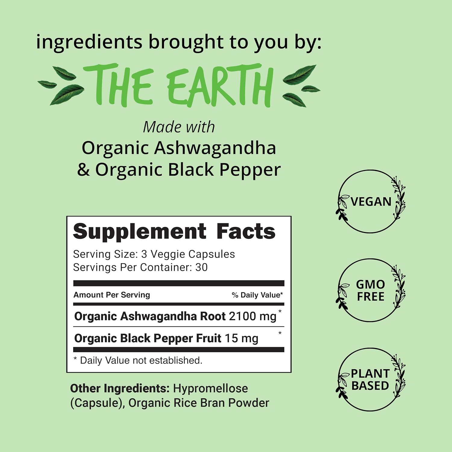 [Pure & Organic Sourced Ashwagandha] With 2100mg of Ashwagandha organic powder extract per serving, our capsules provide a very potent & optimal ashwagandha root supplement to add to your health regimen. It’s grown organically, non-GMO & vegetarian.