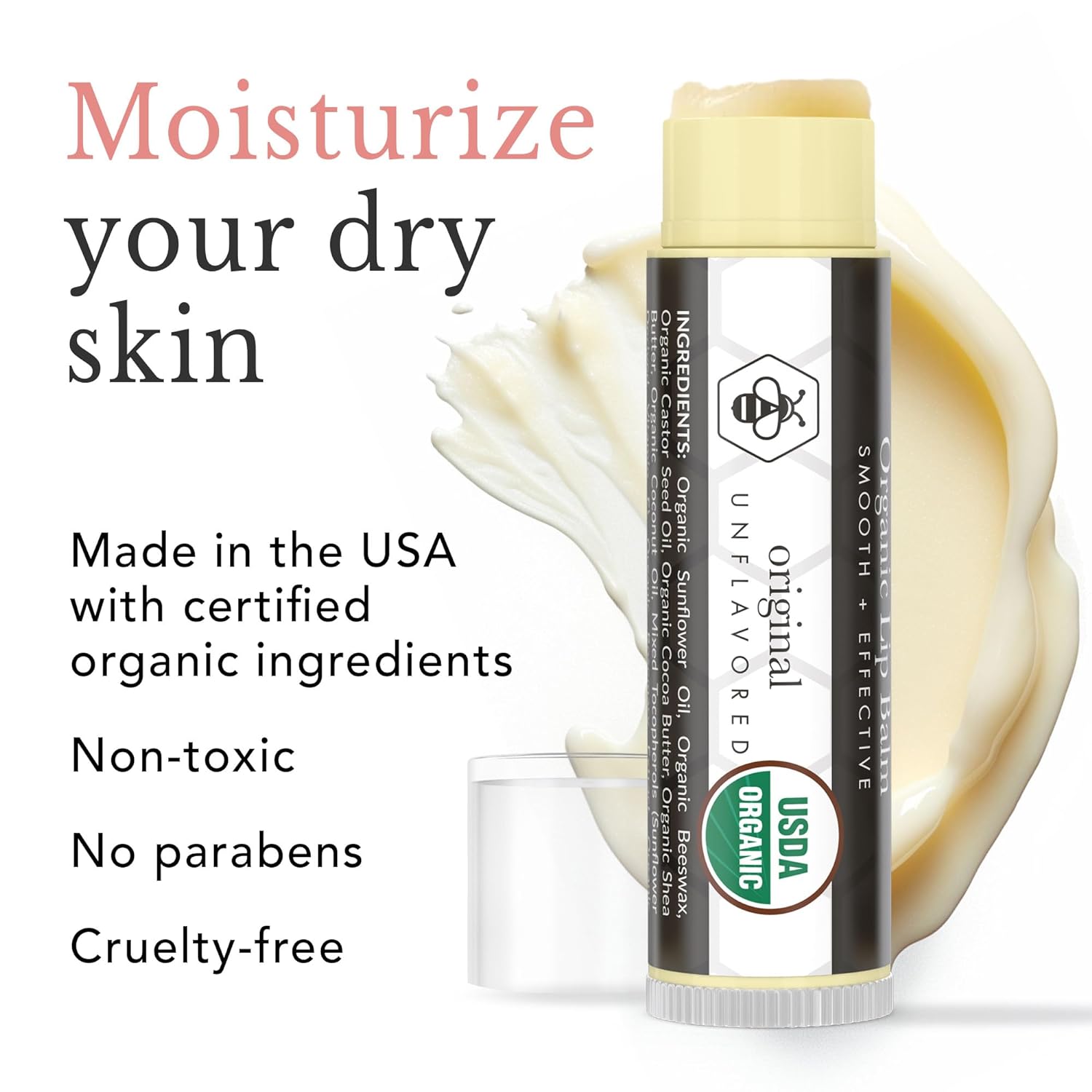- PETROLEUM FREE & ORGANIC: Great alternative to chapstick for men and women. Made in the USA with quality organic ingredients. It's an organic chapstick gift set that is a lip moisturizer for very dry lips and keeps them hydrated.