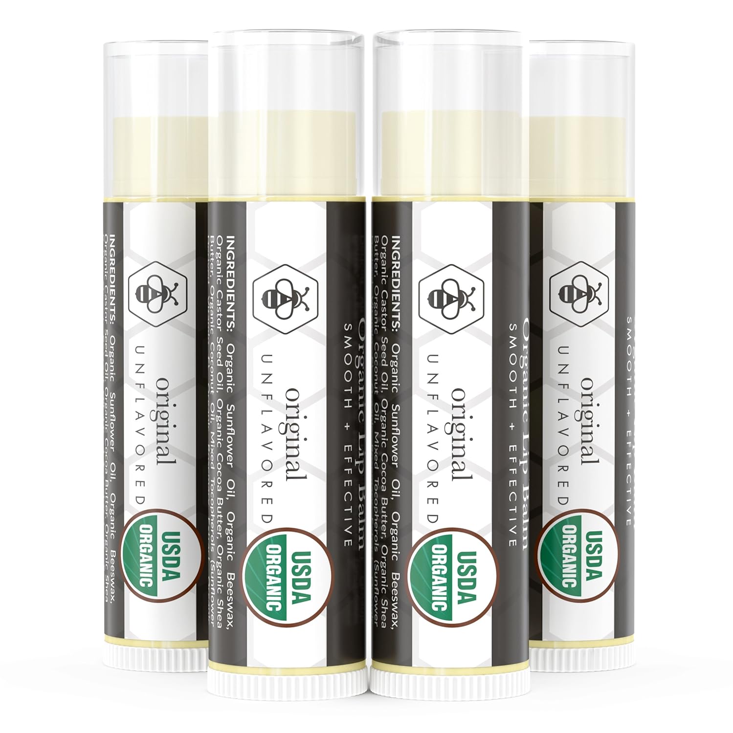 Organic Lip Balm - 4 Pack Unflavored Organic Gifts