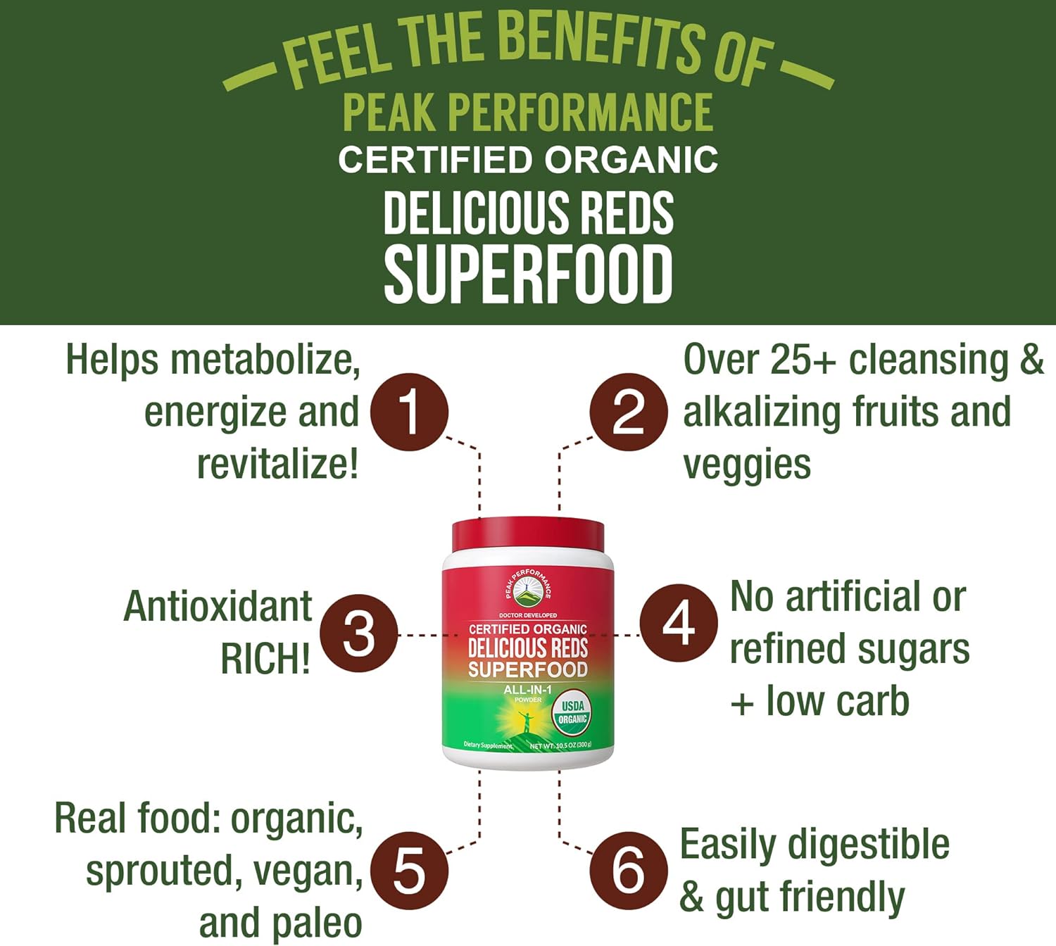 - Don't Be Fooled By Cheap And Even More Expensive Imitations! All Red superfoods are NOT the same. Some popular brands use Grass Powders while Peak Performance use Grass Juice Extract. 20 parts of grass make only one part of grass juice powder - that's why our grass juice powder is 20 times more concentrated than others. Also, unlike cows our stomachs are not made to digest grass. Our grass juice powder is more easily digestible therefore you absorb the maximum nutrients possible.