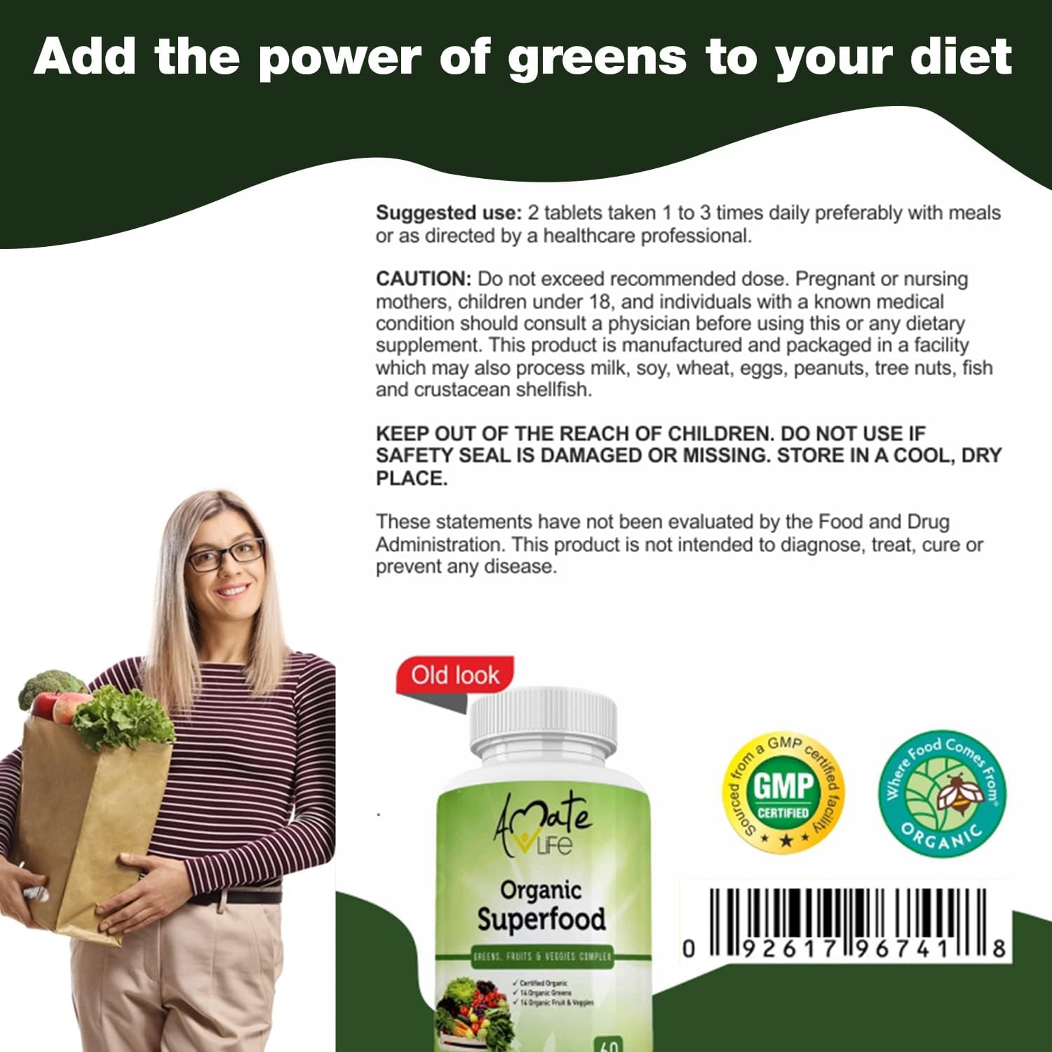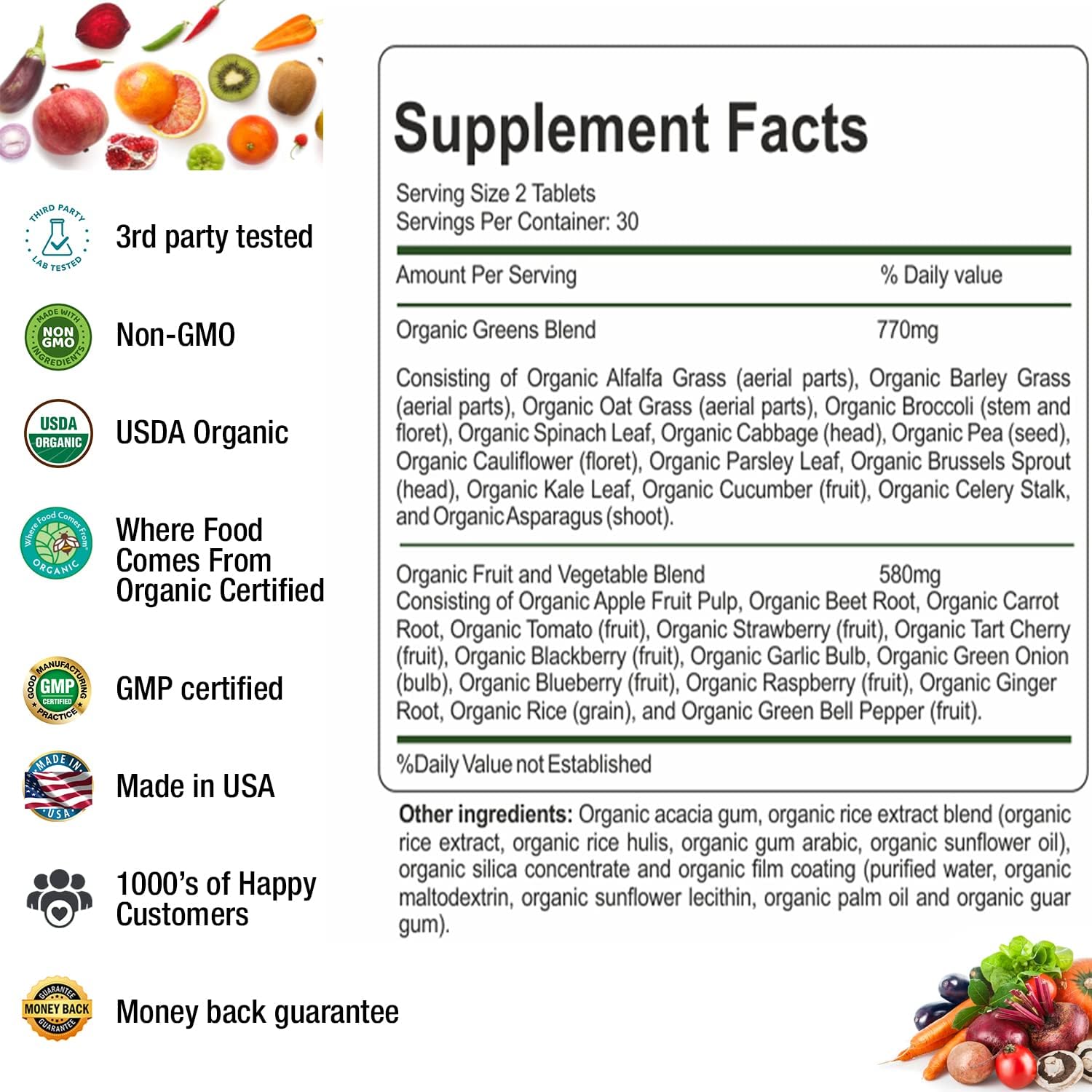 Organic Superfood Greens Fruits and Veggies Complex 60 Tablets
