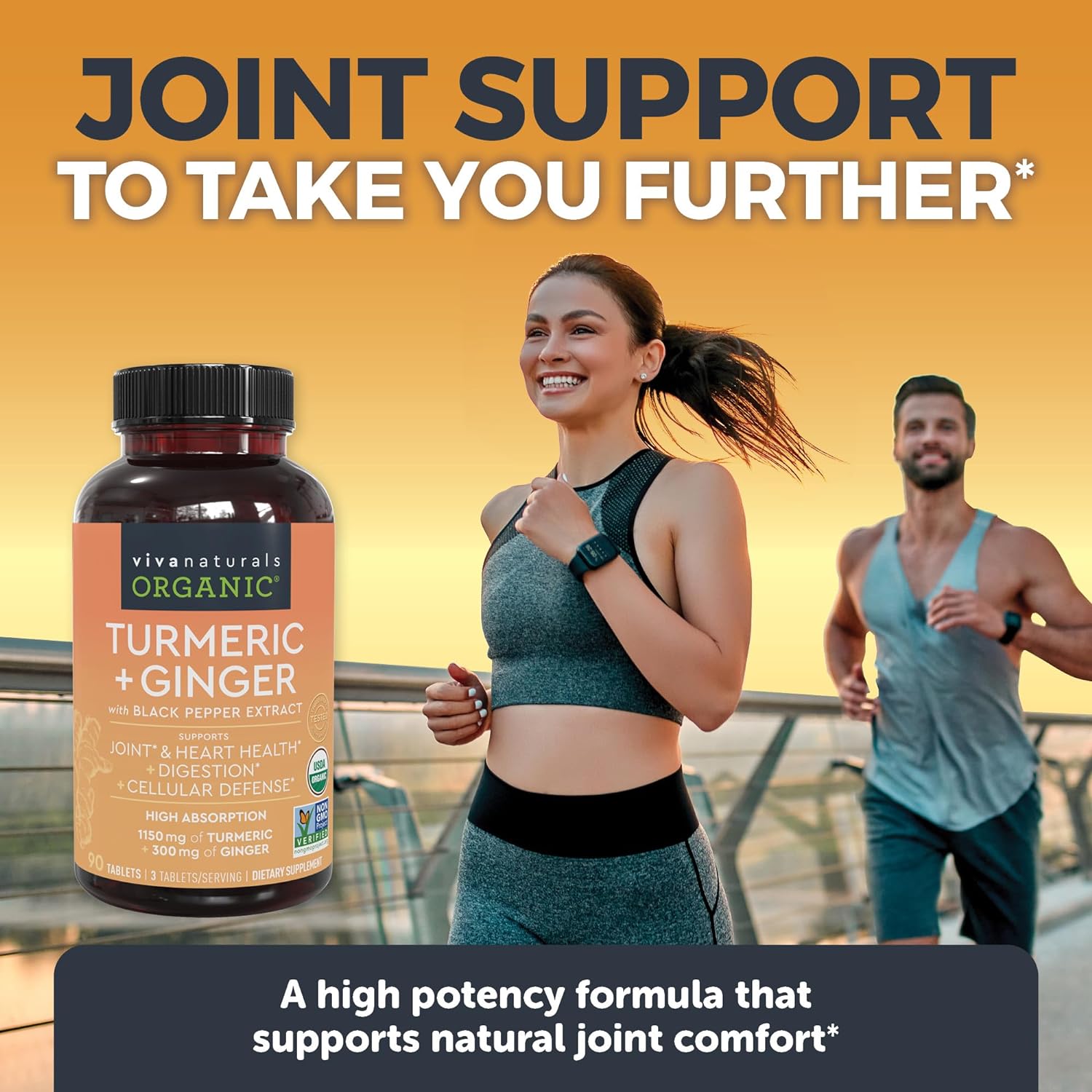 Organic Turmeric and Ginger Supplement for Joint Support & Heart Health 90 count