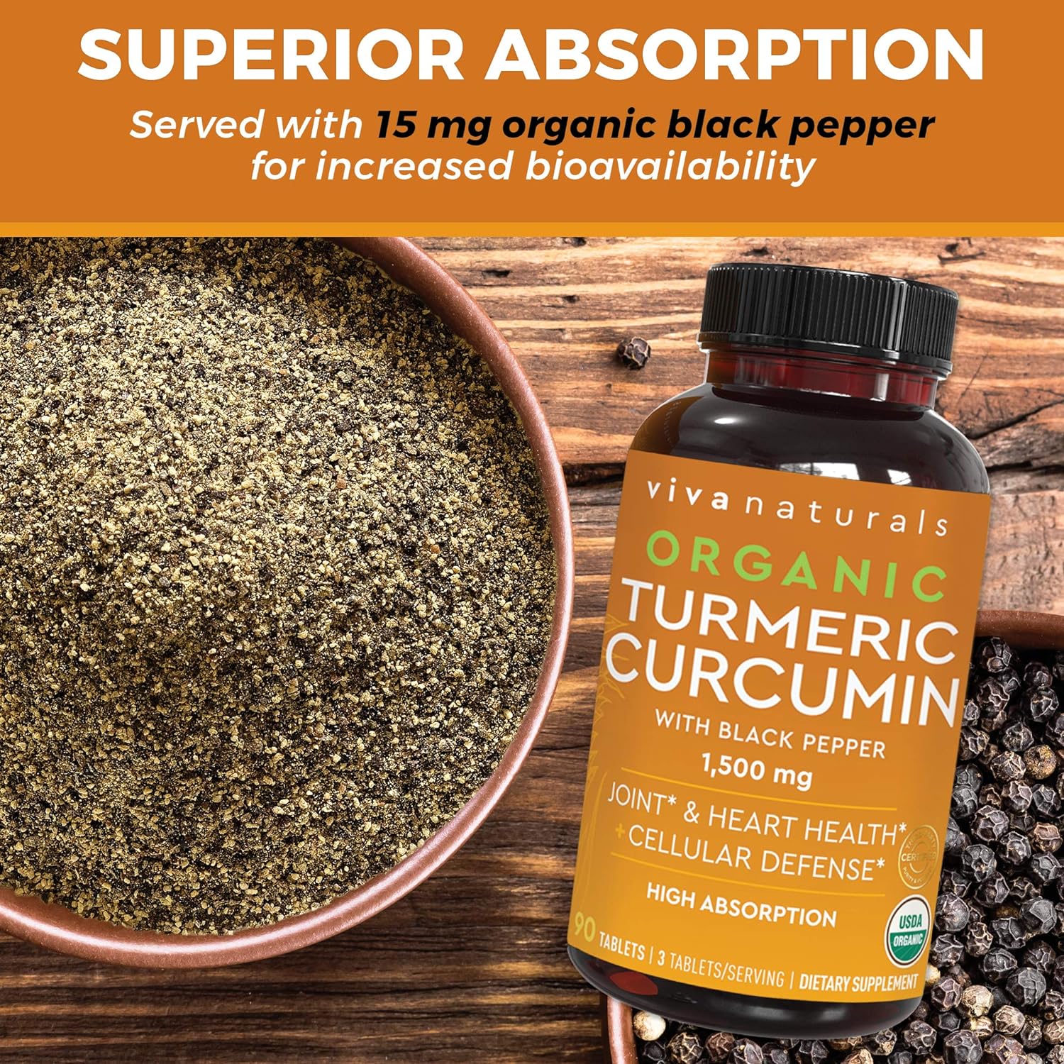 - ORGANIC BLACK PEPPER FOR BETTER ABSORPTION – Turmeric is known for its low bioavailability, so we add 15 mg of organic black pepper fruit extract (Piper nigrum) to our turmeric supplement to help increase absorption.