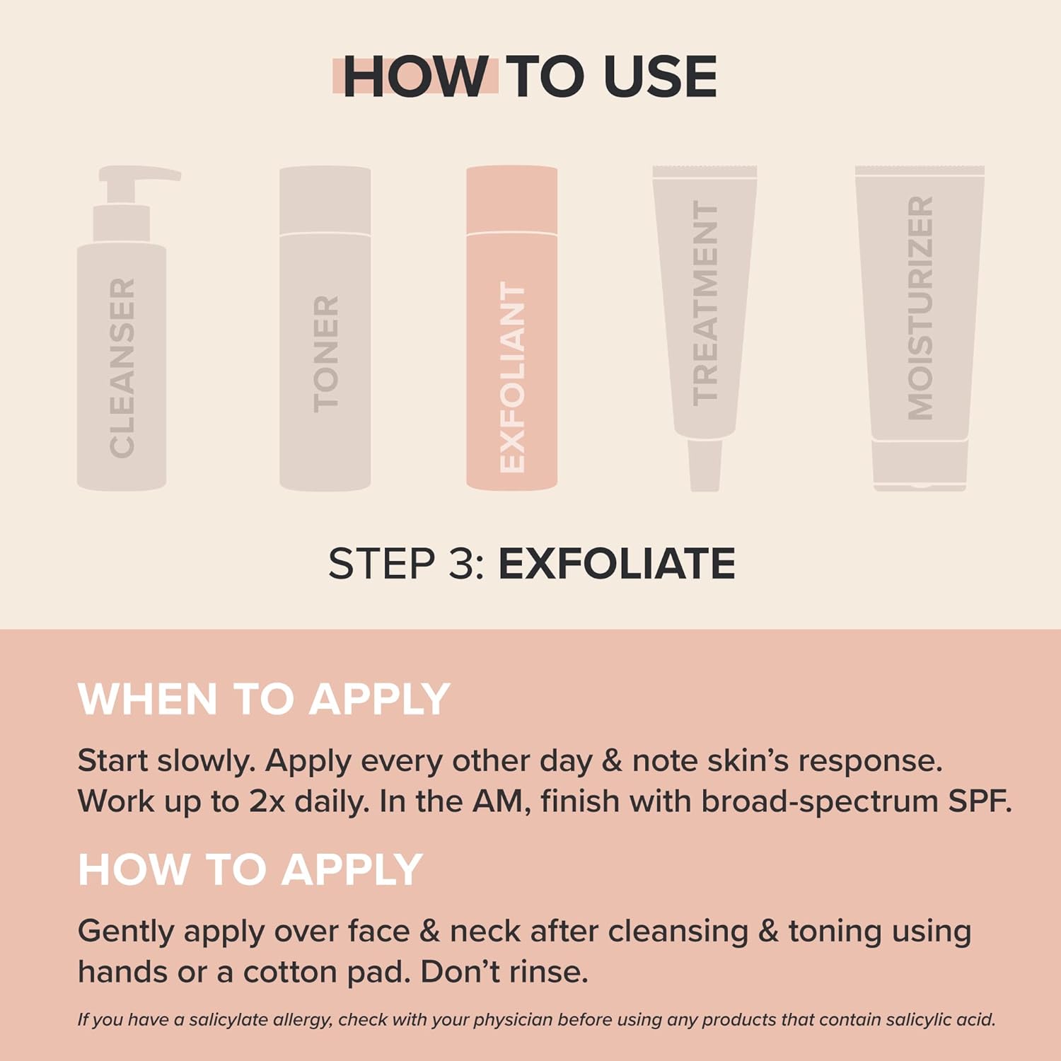 We carefully formulate our products without artificial dyes or fragrances to minimize the risk of sensitivity. To ensure this is the right product for you, please always patch test & note skin's response over the next 48 hours prior to use. If you have a salicylate allergy, check with your physician before using any products that contain salicylic acid.