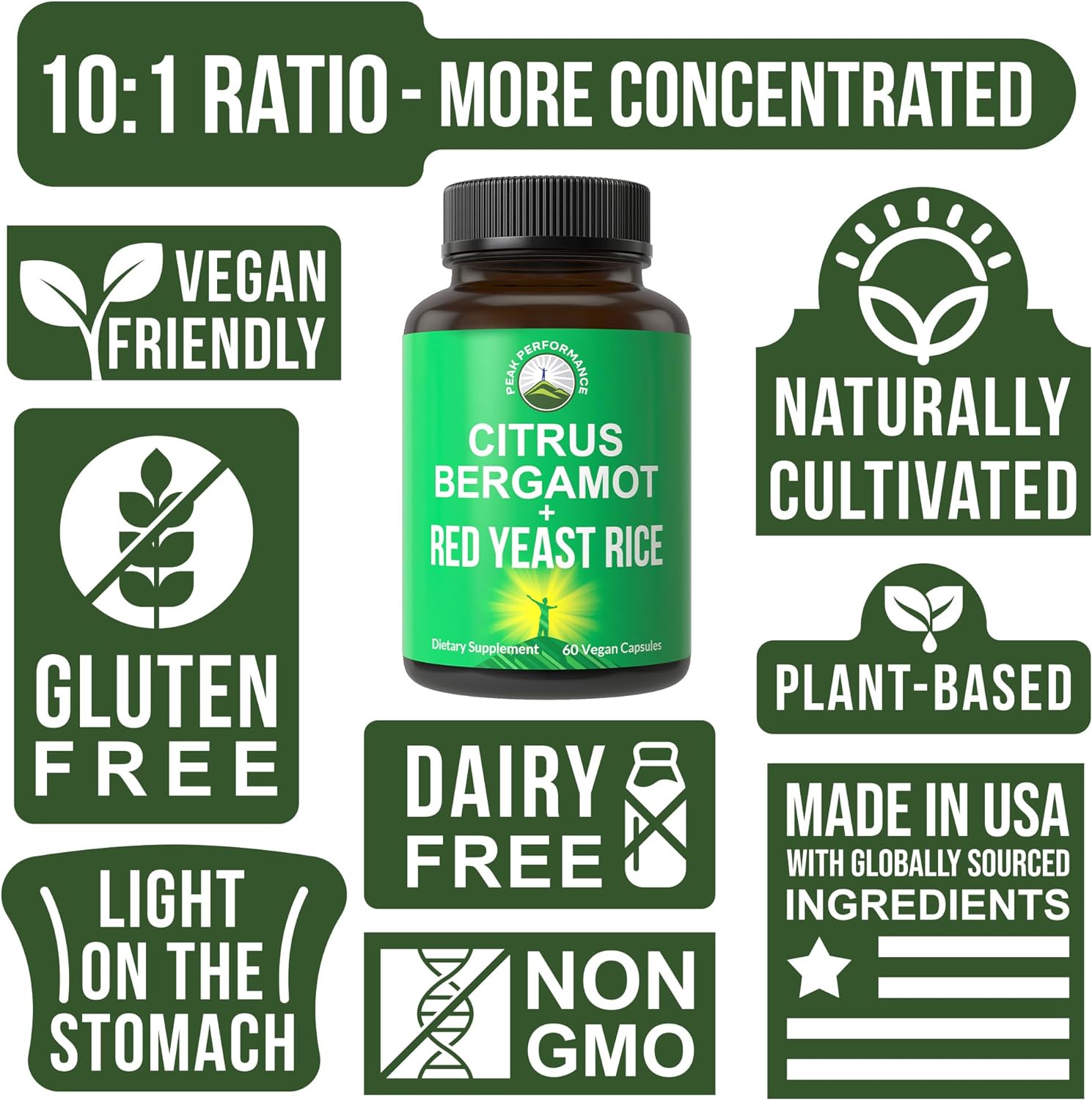 Peak Performance Citrus Bergamot + Red Yeast Rice. 2-in-1 Supplement.