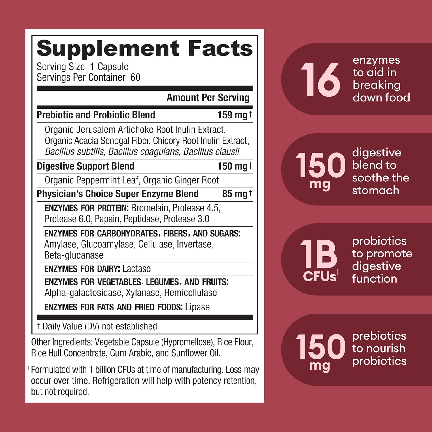 - Science Backed - Our Digestive Enzyme Probiotics are crafted based on scientific research. We have partnered with expert physicians to help review our products & research. We strive to educate & help you with informed decisions regarding your health.
